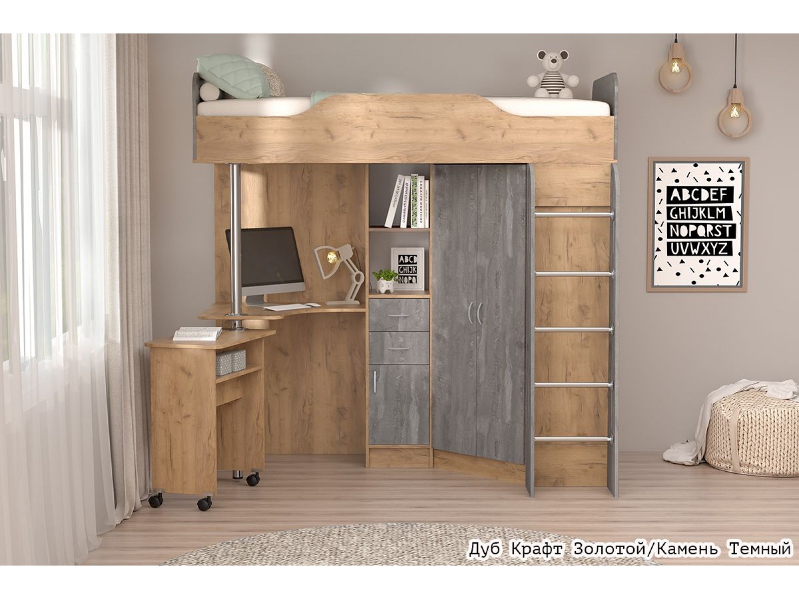 Детская:Кровать-чердак:Со столом:Со шкафом |