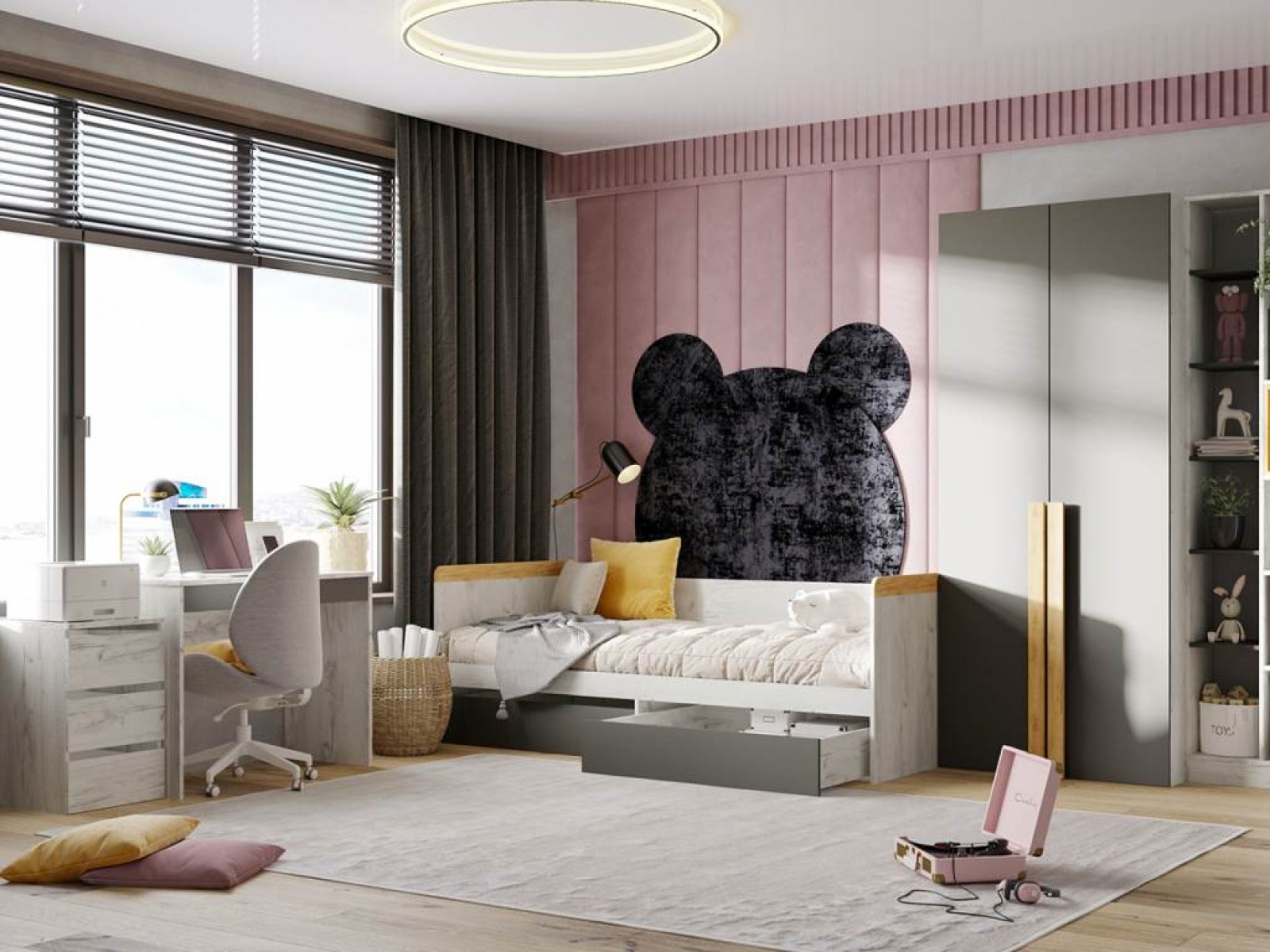 Детская или подростковая кровать-тахта Кент-1 секция №1 с выкатными ящиками на колёсиках.