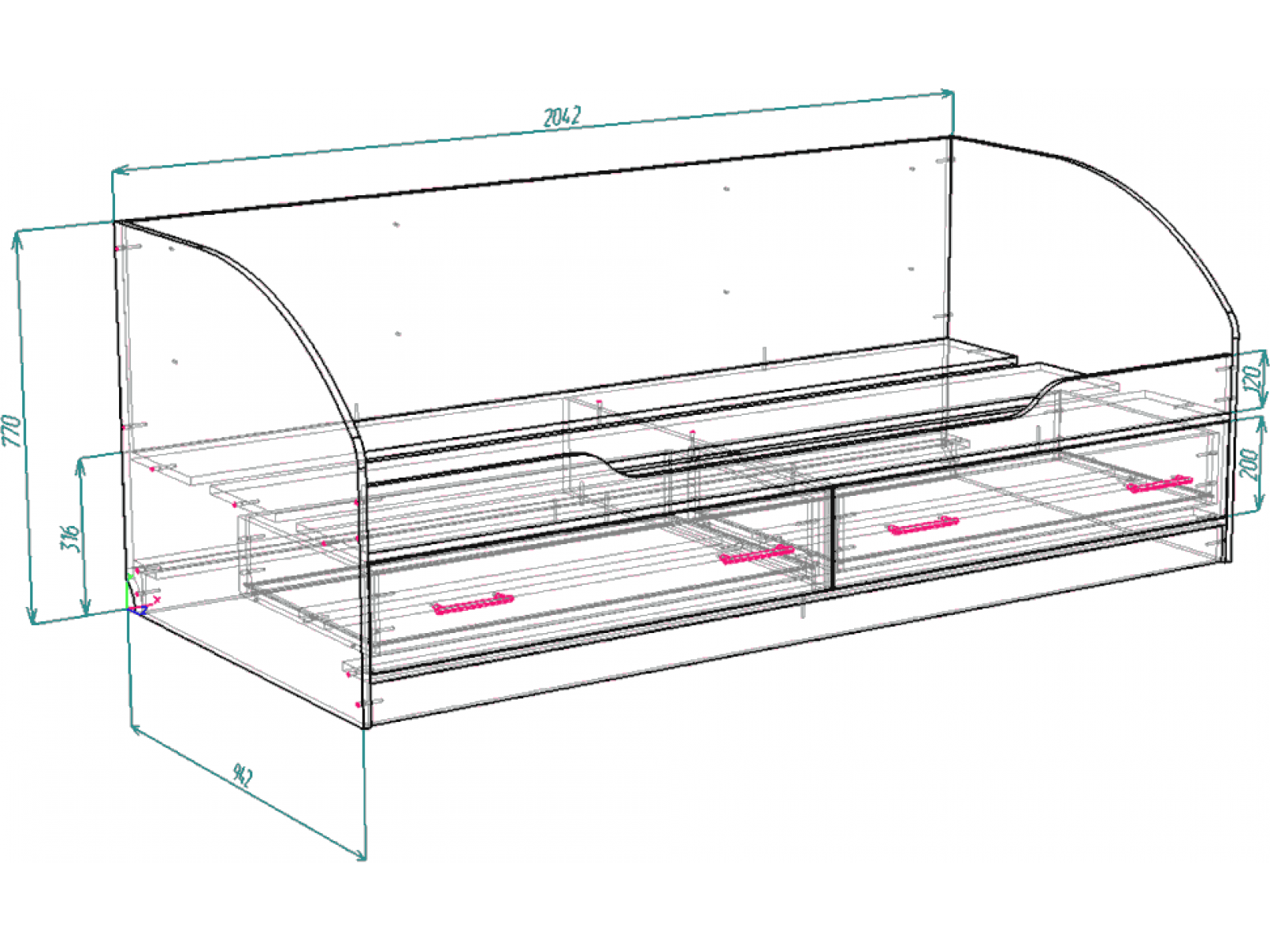 Кровать 900 с ящиками в стильных цветах! Эта детская кровать станет не только уютным местом для сна, но и оригинальным украшением интерьера.