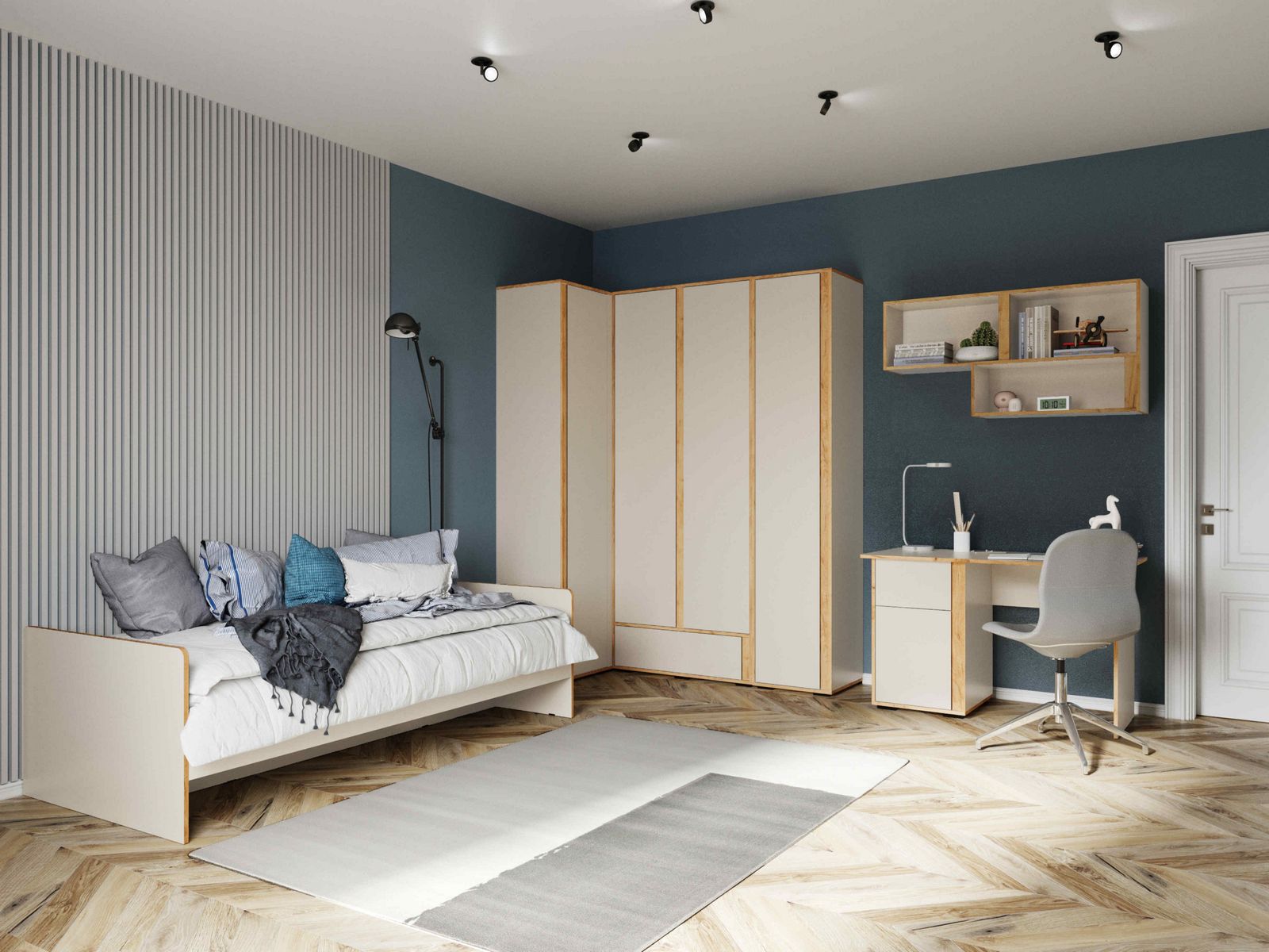 Детская Асцелла — это уютное и функциональное пространство, созданное для комфортного обучения и отдыха ребенка. Шкафы с полками и ящиками идеально подойдут для хранения одежды, книг и разных аксессуаров. Шкафы выполнены в стильном дизайне и помогут поддерживать порядок в комнате, позволяя ребенку легко находить необходимые вещи. Письменный стол обеспечит достаточно пространства для учебы и творчества. Он оснащен выдвижным ящиком на шариковых направляющих, а также двумя полками для хранения необходимых предметов. Над столом можно разместить навесную открытую полку, в которой легко разместить книги и прочие акессуары.