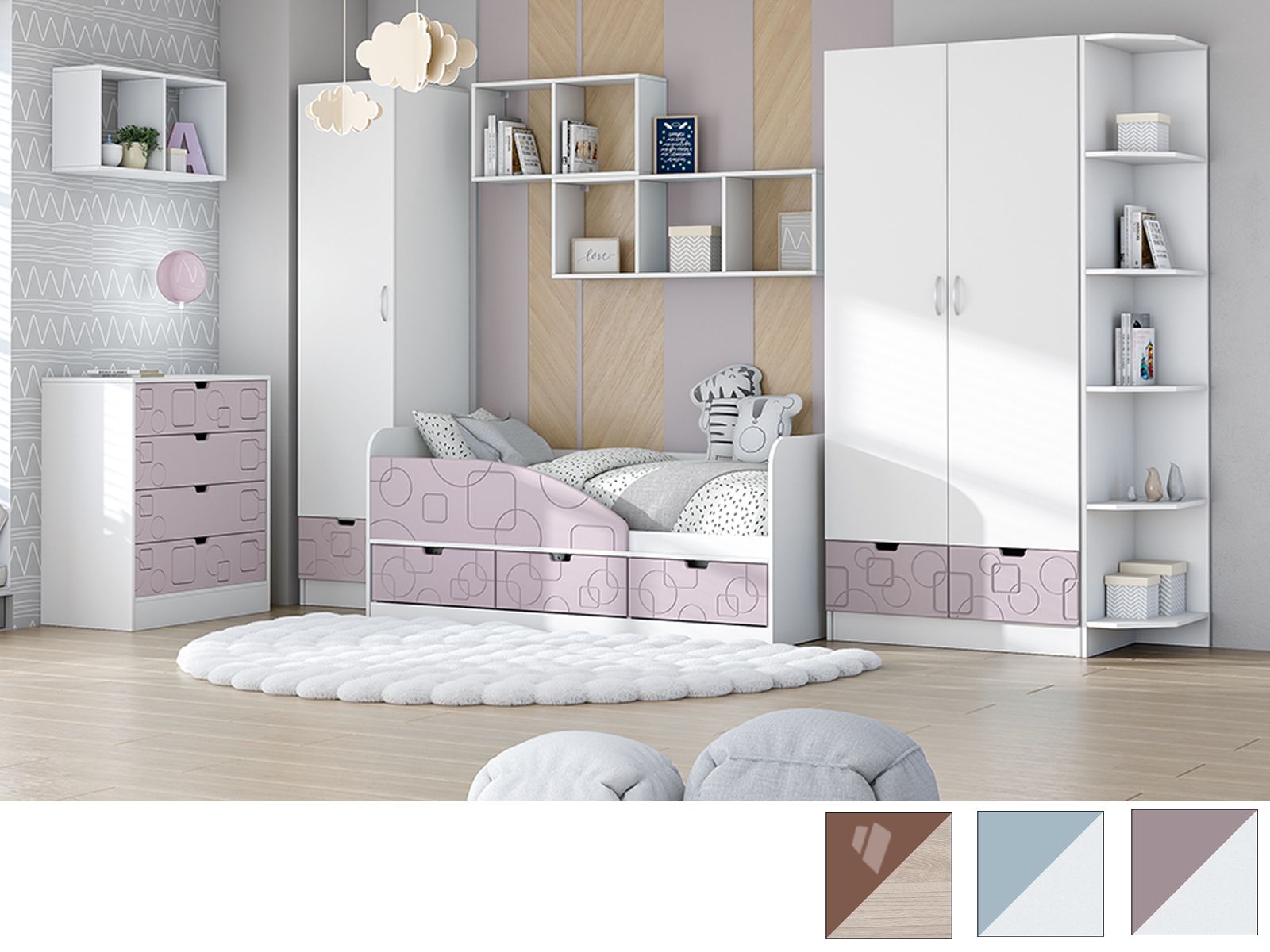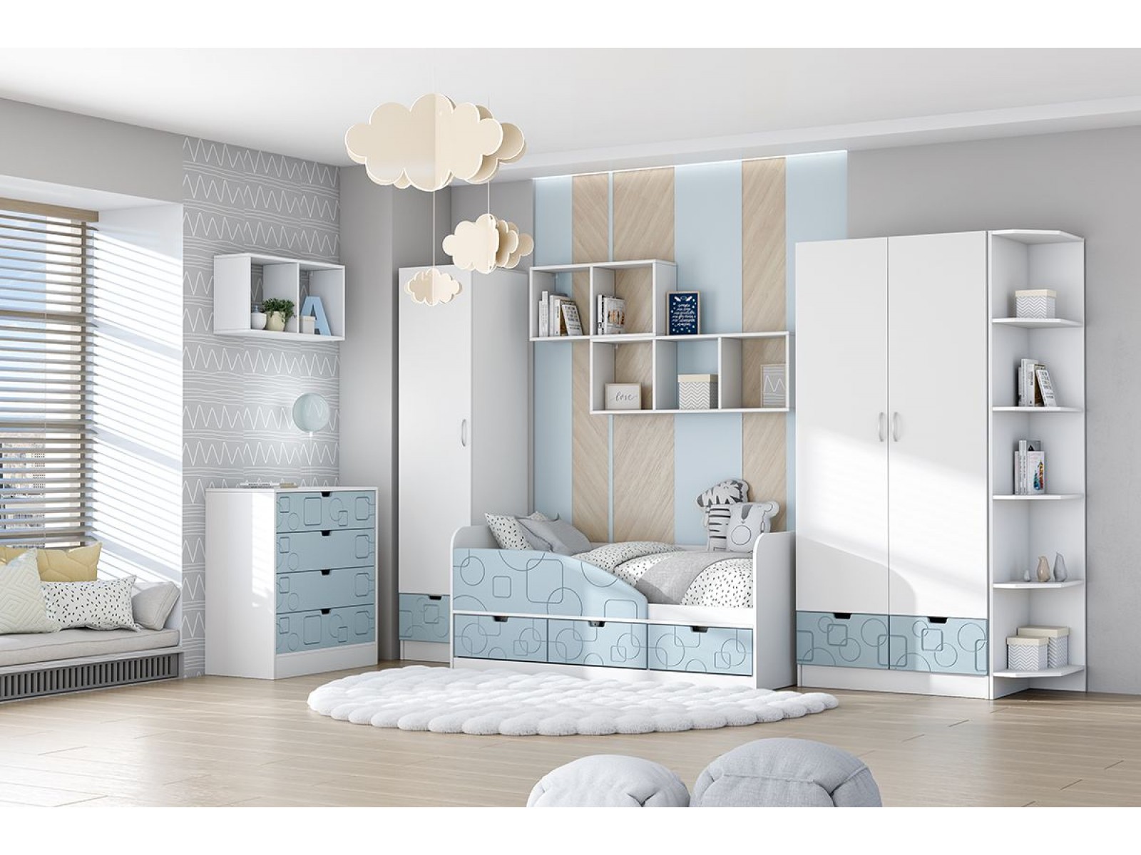 Молодёжная комната Бриз способна хорошо вписаться в дизайн практически любой детской комнаты. За счёт своей многофункциональности она долгое время будет оставаться для ребёнка удобной и комфортной.