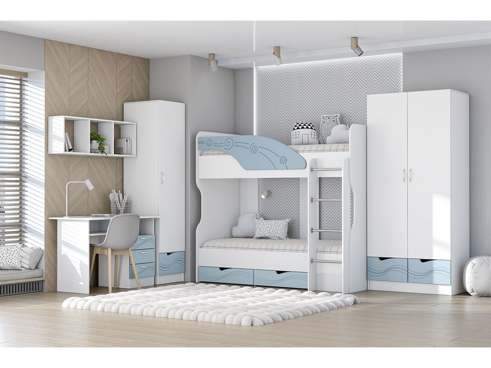 Молодёжная комната Бриз способна хорошо вписаться в дизайн практически любой детской комнаты. За счёт своей многофункциональности она долгое время будет оставаться для ребёнка удобной и комфортной.