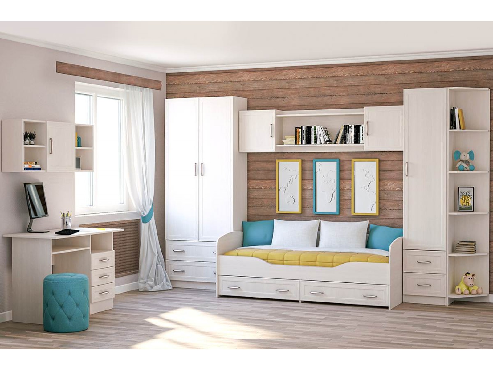 Стильная, практичная мебель в детскую комнату одинаково хорошо подойдёт как для подростков, так и для дошколят. Вместительные системы хранения, кровать с выкатными бельевыми ящиками, которая, при желании, превращается в удобный диванчик для отдыха и посиделок с друзьями,