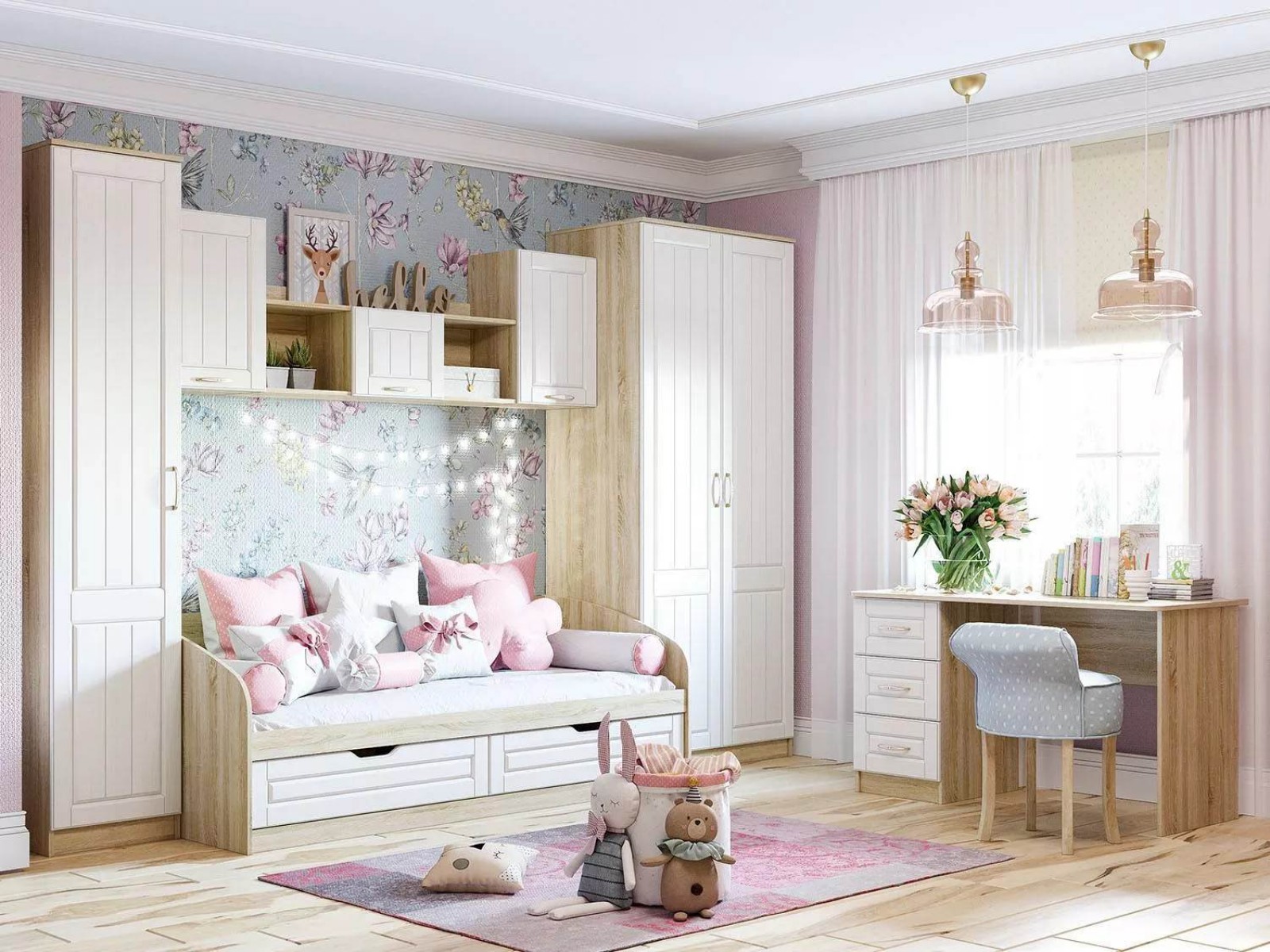 Детская Оливия 1 Дуб Сонома/белое дерево - это яркий и современный модульный набор для детской комнаты.