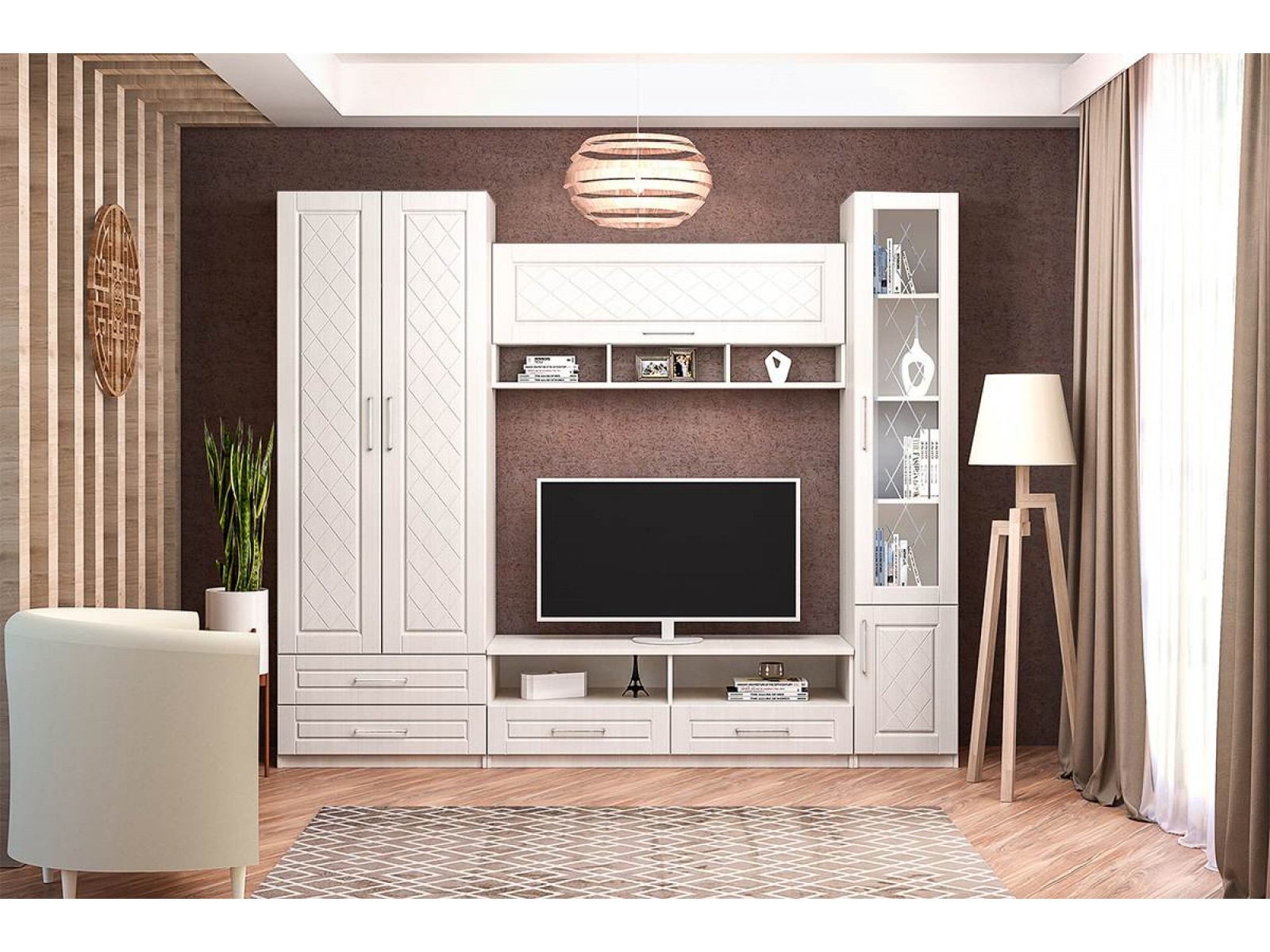 Гостиная Аллегро 9 Роммб Бодега белая + Сандал белый - стильный и современный модульный набор. Есть ниша для большого телевизора.