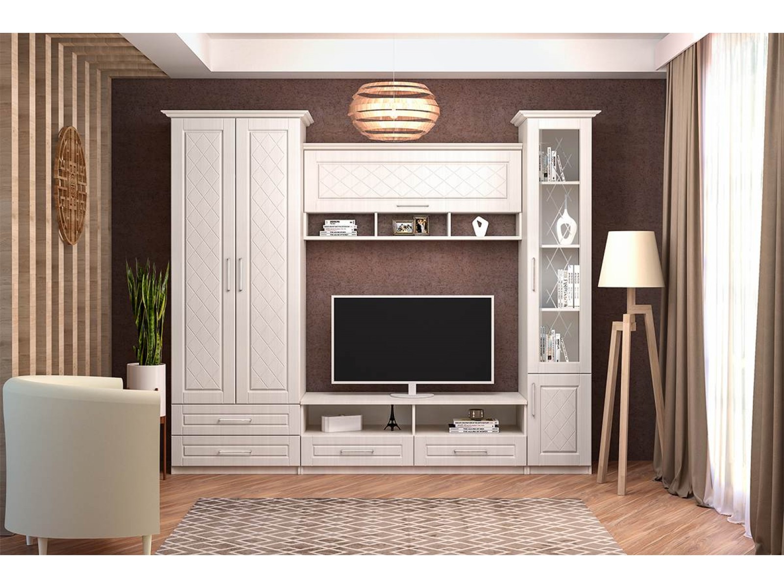 Гостиная Аллегро 9 Роммб Бодега белая + Сандал белый - стильный и современный модульный набор. Есть ниша для большого телевизора.