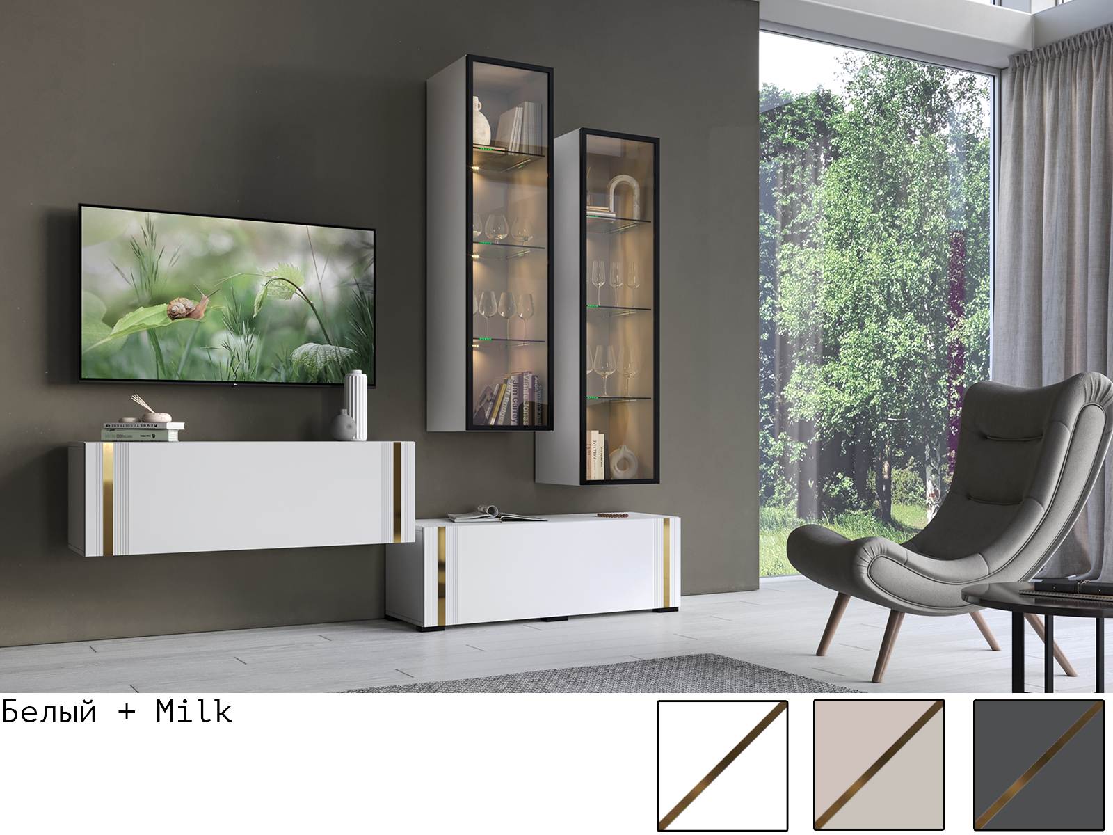 Цена Гостиной равна стоимости отдельных его элементов входящих в комплект!