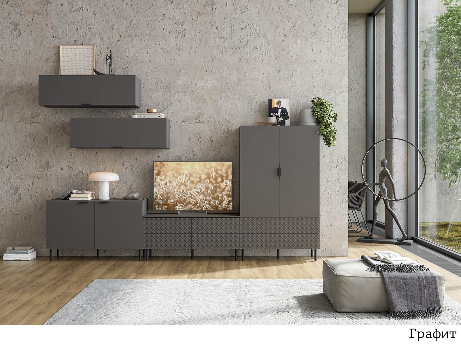 В модульной гостиной серии Энсо представлены шкафы высотой от 1568 до 2150 мм и глубиной от 378 до 588мм. Вся мебель изготовлена из высококачественного материала.