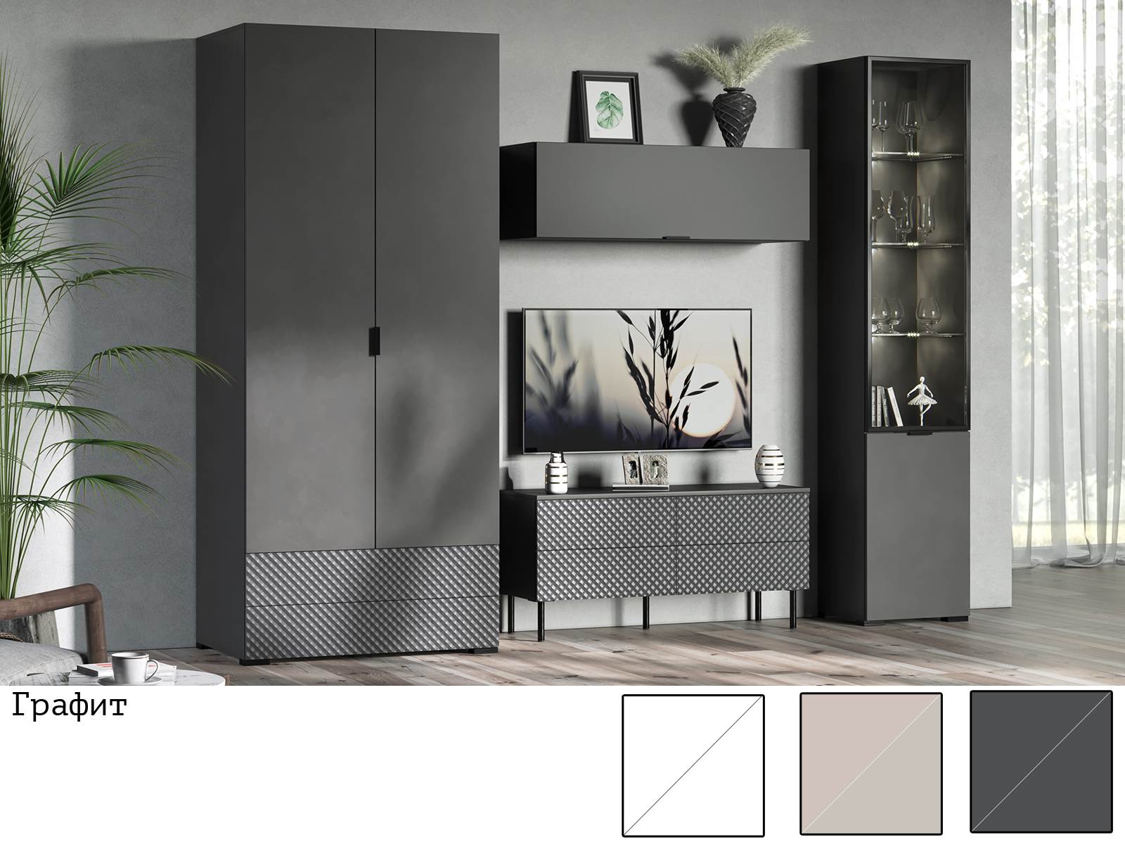 В модульной гостиной серии Энсо представлены шкафы высотой от 1568 до 2150 мм и глубиной от 378 до 588мм. Вся мебель изготовлена из высококачественного материала.