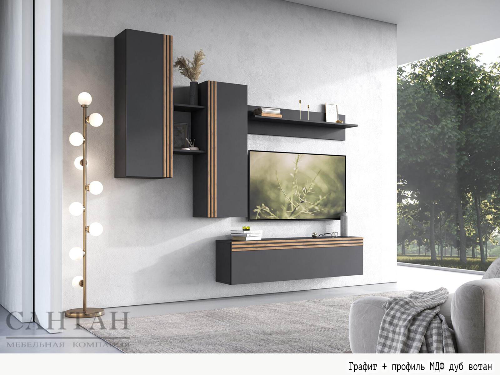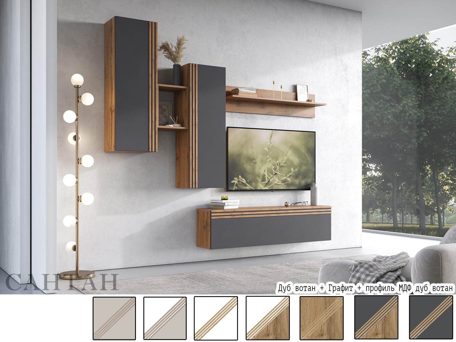 Вариант 4 Корпус ЛДСП Дуб Вотан + фасад ЛДСП Графит/Декор фасада: профиль МДФ Дуб Вотан