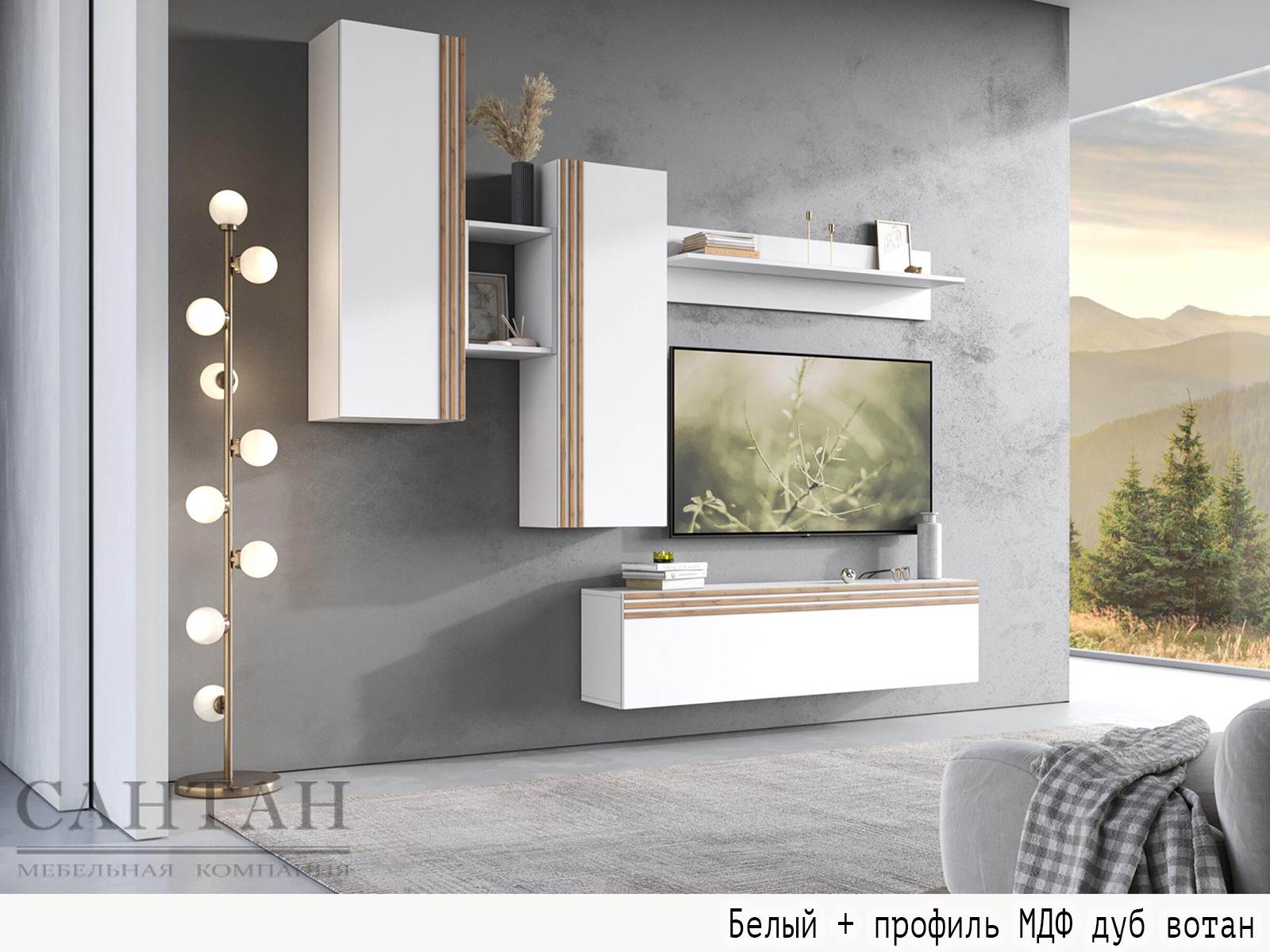 Вариант 3 Корпус ЛДСП Дуб Вотан + фасад ЛДСП Белый/Декор фасада: профиль МДФ Дуб Вотан
