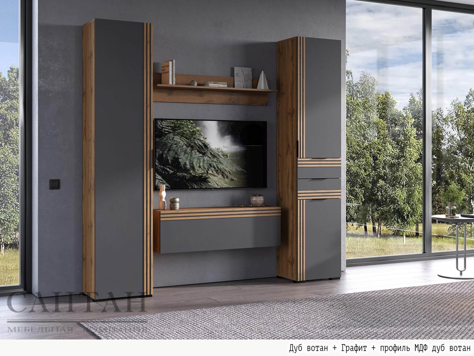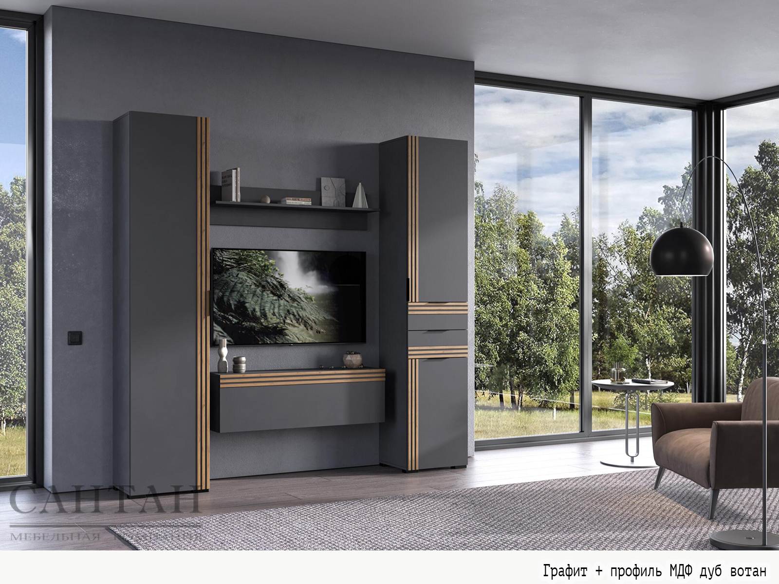 Вариант 2 Корпус ЛДСП Графит + фасад ЛДСП Графит/Декор фасада: профиль МДФ Дуб Вотан