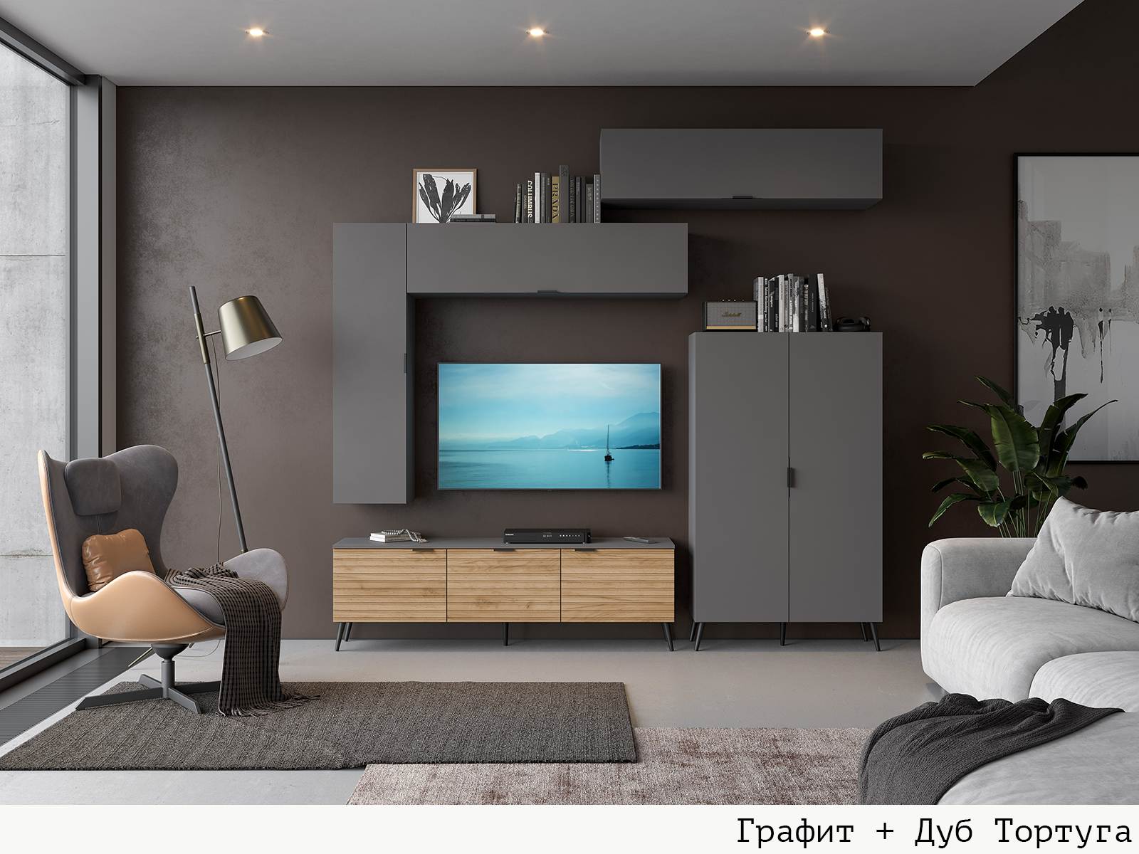 Вариант 2: Корпус ЛДСП Графит + Фасад ЛДСП Графит / МДФ Дуб Тортуга