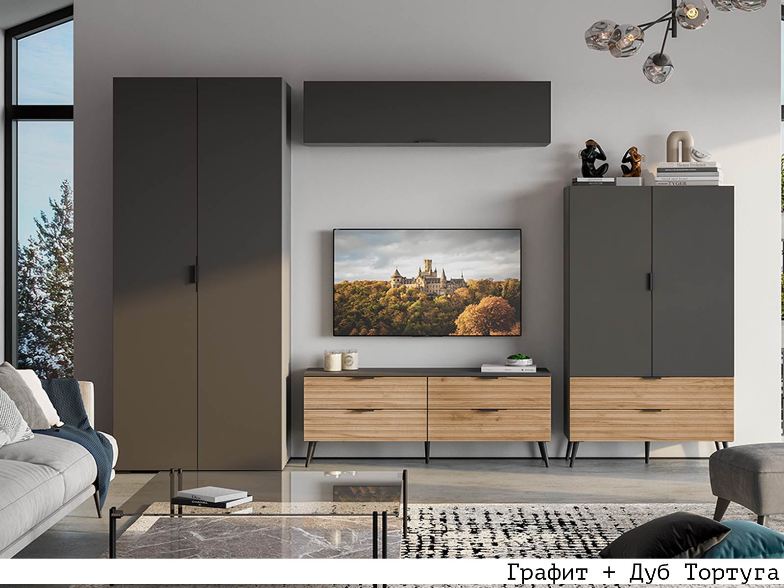 Вариант 2: Корпус ЛДСП Графит + Фасад ЛДСП Графит / МДФ Дуб Тортуга