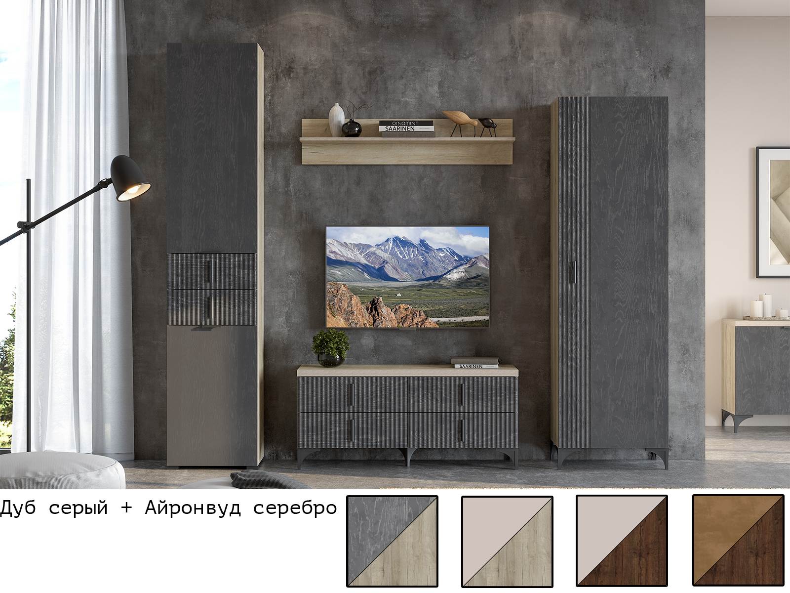 Корпус Дуб серый + Фасад Айронвуд серебро