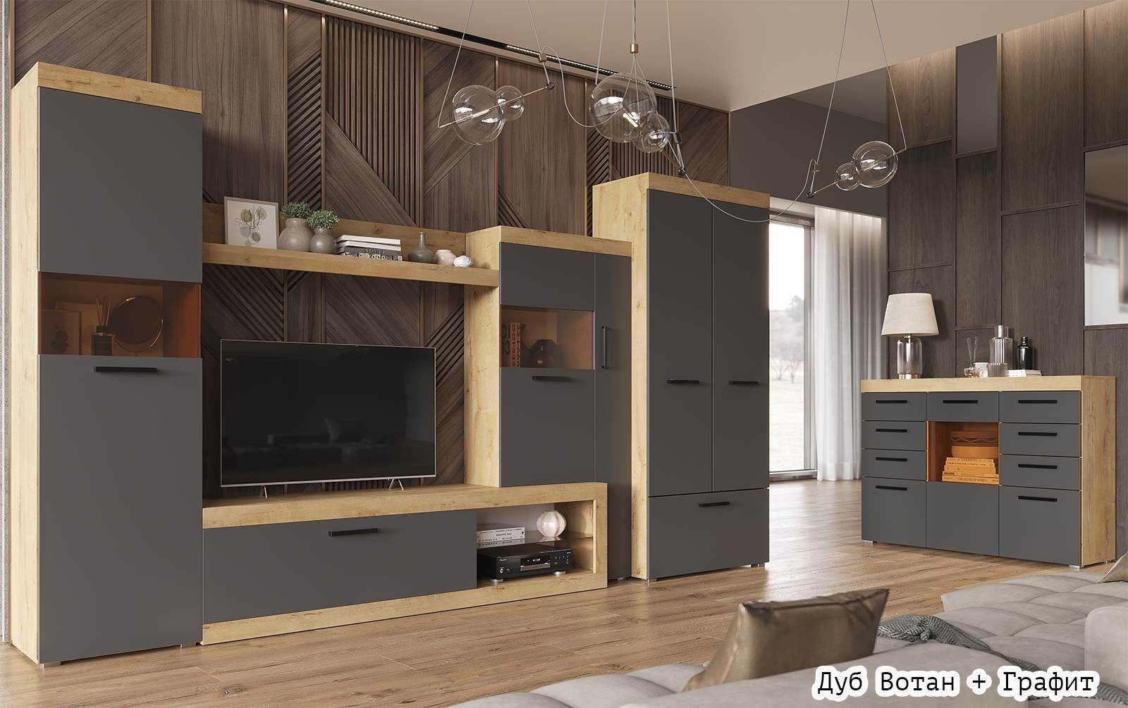 Стенка Бастон - стильный и практичный вариант организации хранения в гостиной.