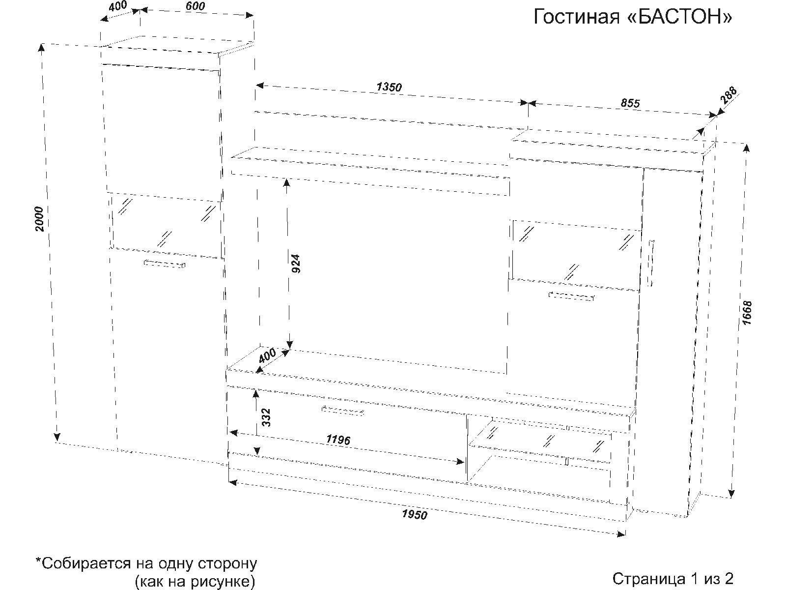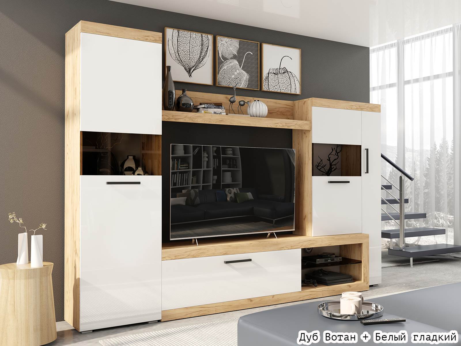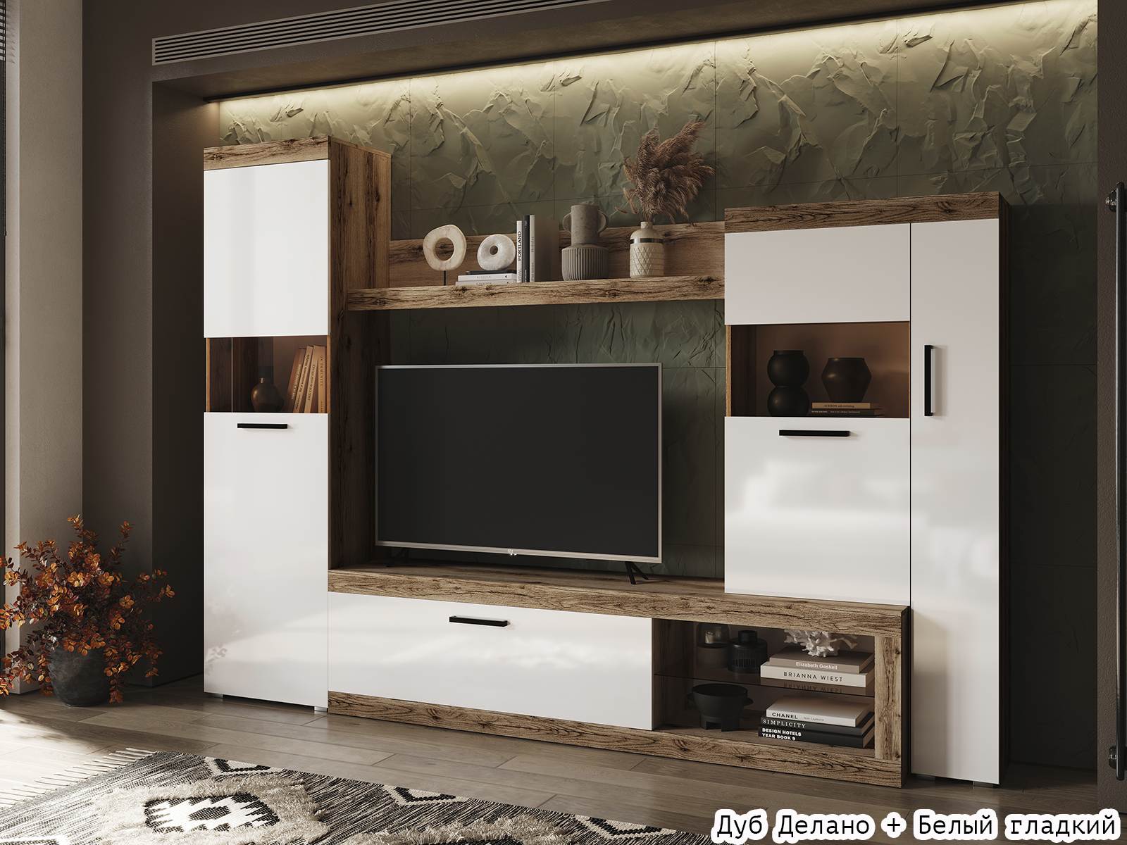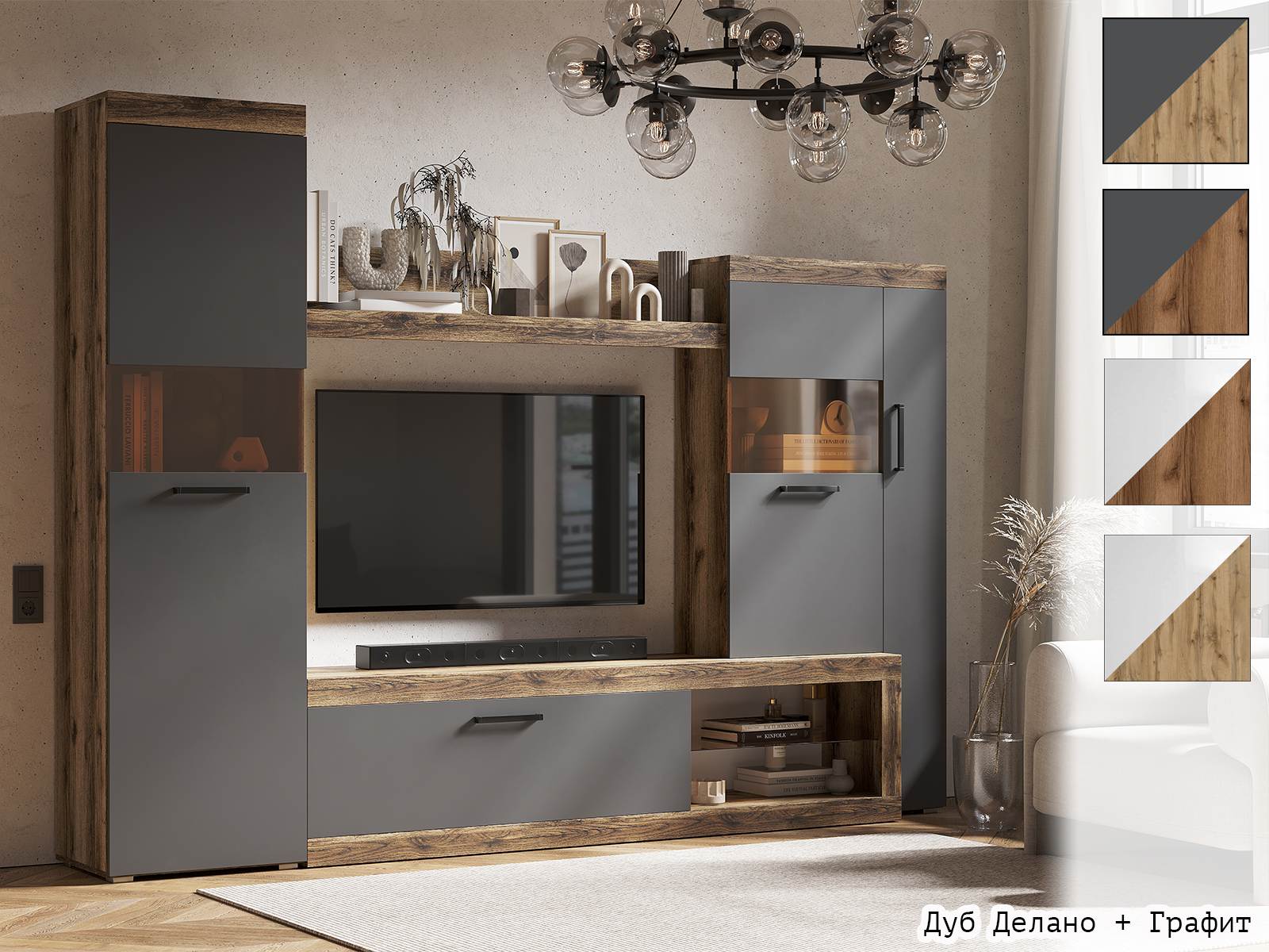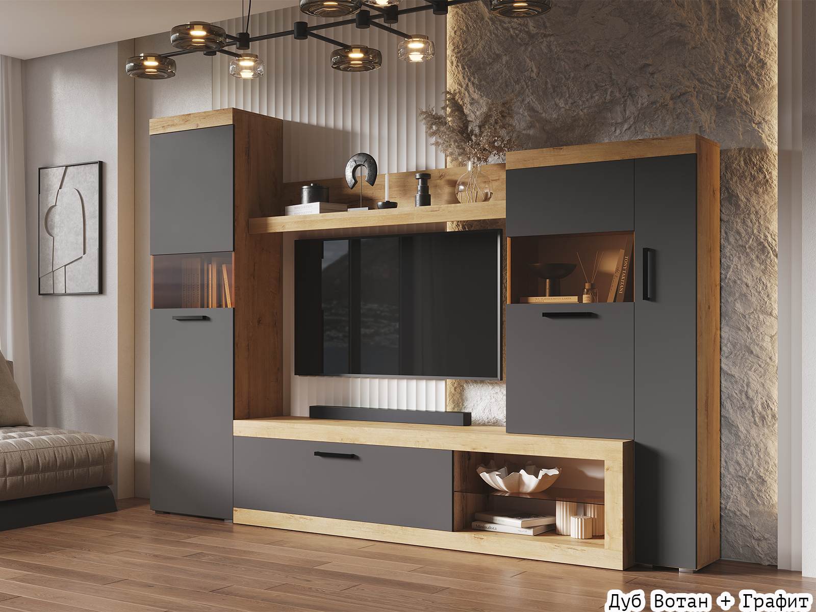 Стенка Бастон - стильный и практичный вариант организации хранения в гостиной.