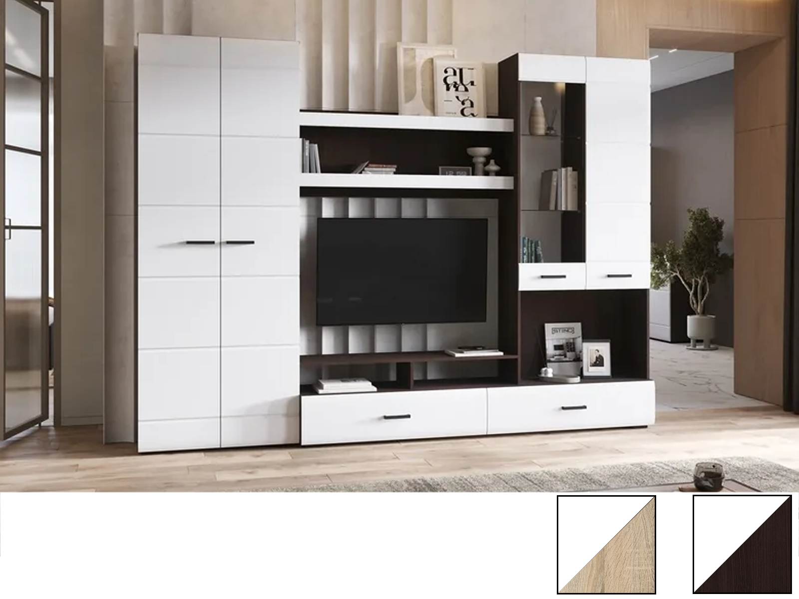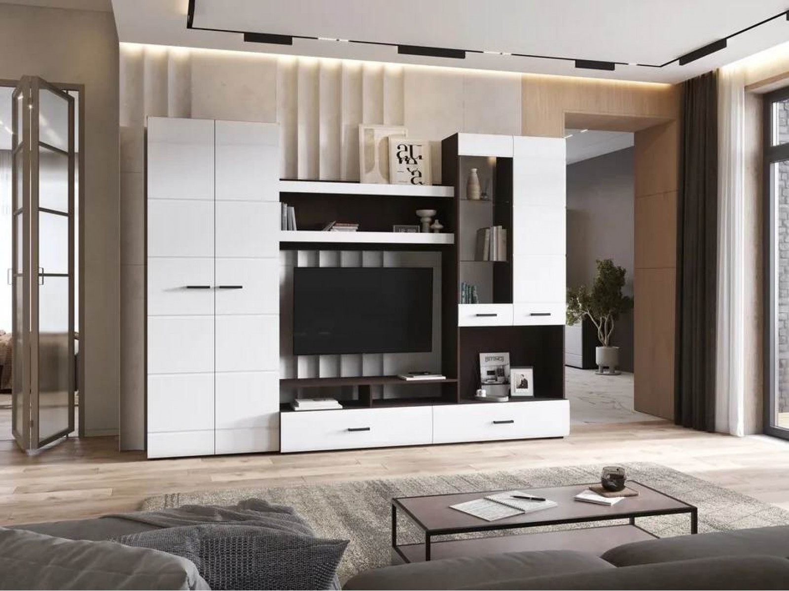 Гостиная Либерти ГС 01 обладает отличной функциональностью и комфортом при ежедневной эксплуатации. Эти необходимые свойства обеспечивает наличие нескольких вместительных секций, позволяющих с удобством разместить все нужные вещи. Продуманное цветовое решение мебели гарантирует ее совместимость с практически любым современным интерьером.