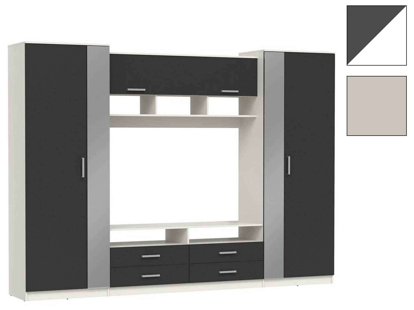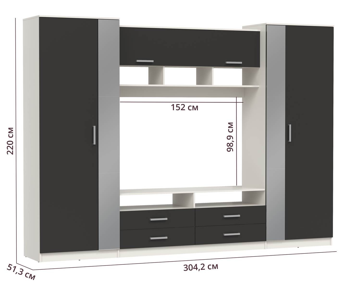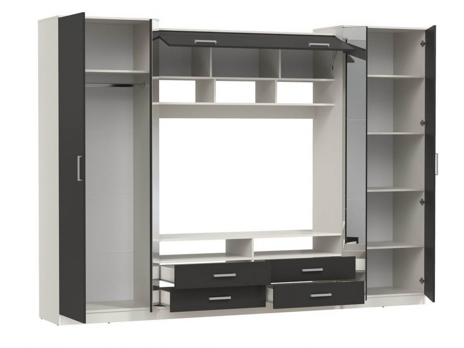 91.01 Вена шкаф многоцелевой Белый + Диамант серый отлично подойдёт для интерьера современной гостиной комнаты.
