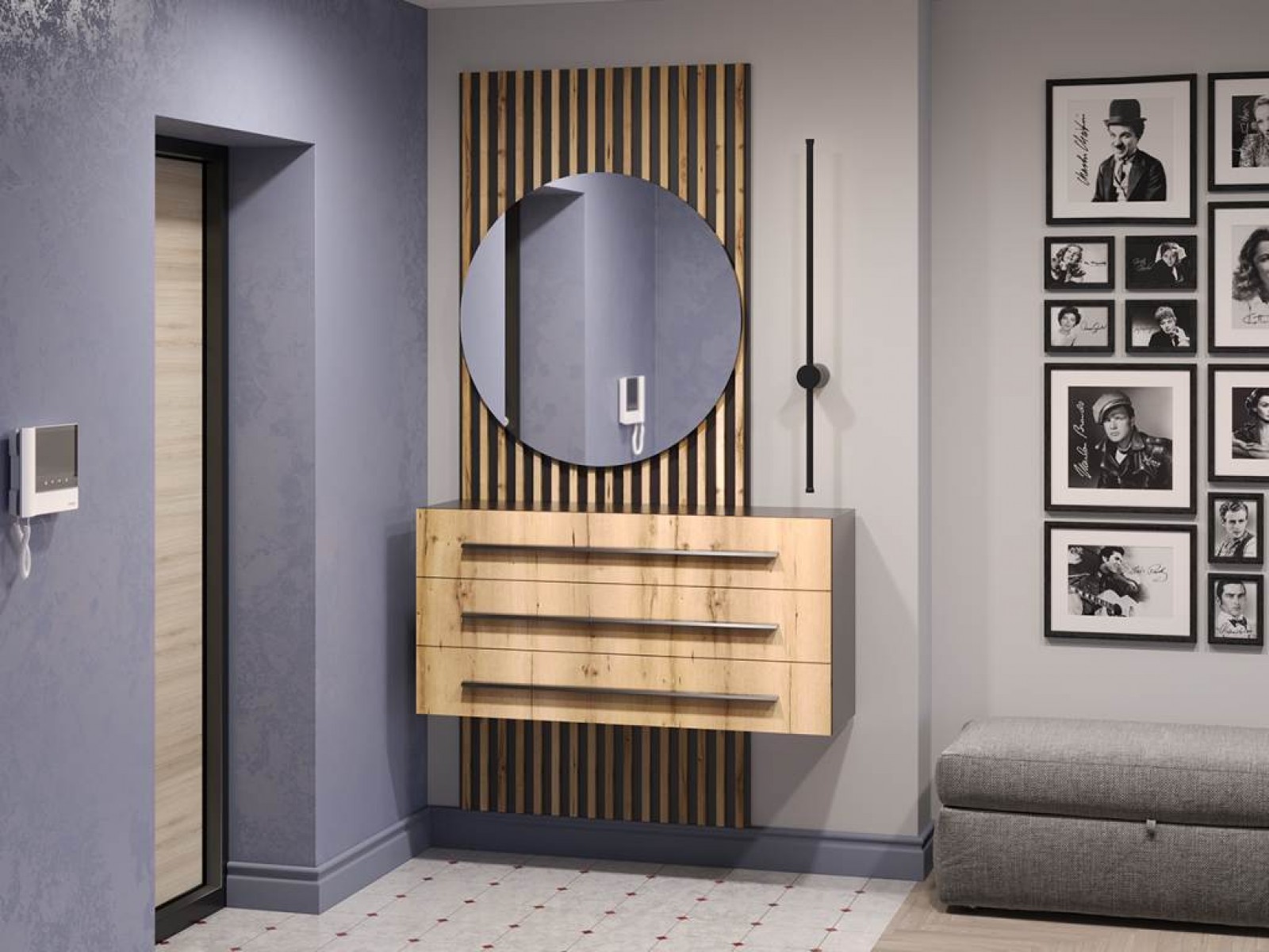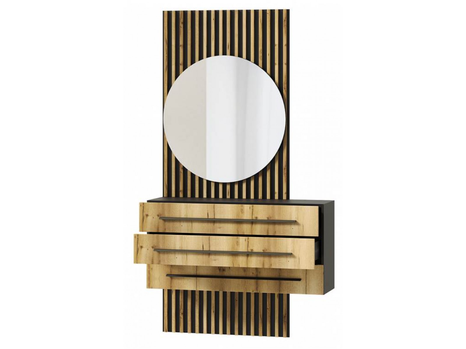 Тумба подвесная с зеркалом Аэлита секция №1 чёрный-дуб вотан - это стильный и функциональный элемент мебели, который идеально подойдет для прихожей.