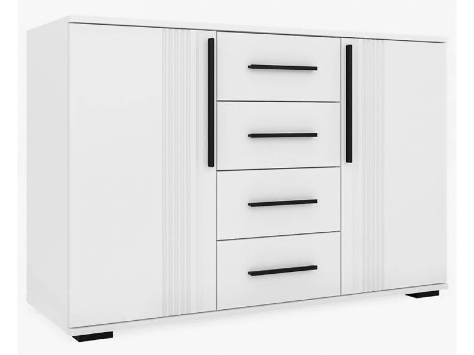 Широкий комод Амалия будет гармонично вписываться в интерьер гостиной или спальни. Модуль имеет выкатные ящики и закрытые полки за фасадами.