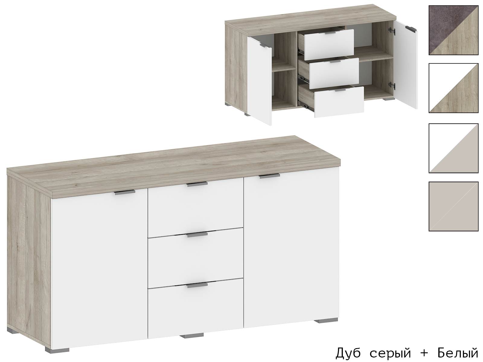Ручки и опоры: В цветах Белый и Дуб серый - Ручка серебро. В цвете Кашемир - Ручка чёрная