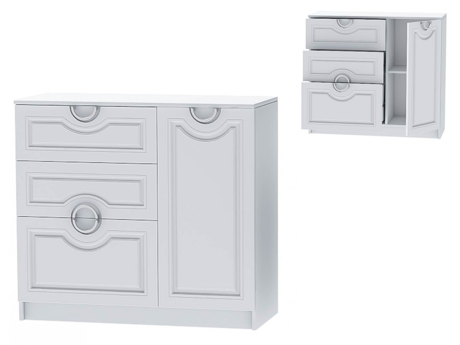 Состав модуля: Корпус Комод-2, Белый + фасад Комод-2 МДФ, Бланж Р-811 + Ручка FS - 218096 сатин (Ника)-4шт.