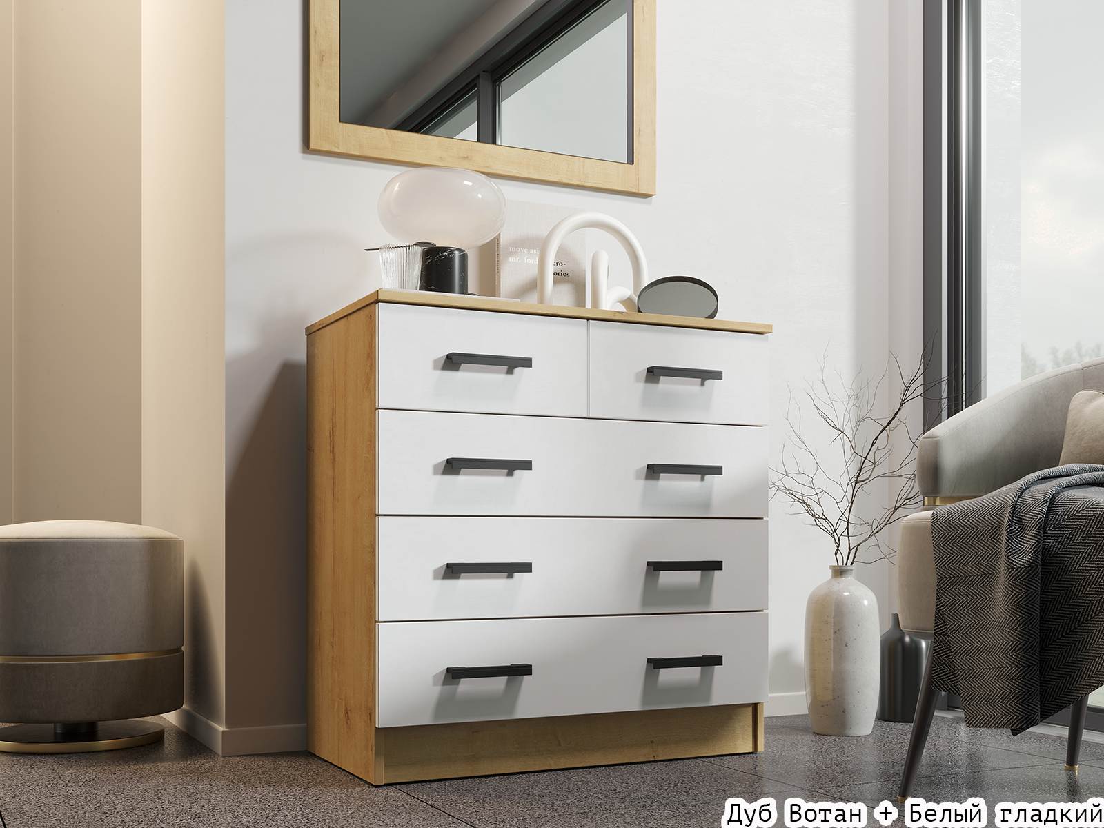 Комод К800-3/2 выполнен в современном стиле и сочетает в себе функциональность и эстетику. Комод оснащен пятью ящиками с роликовыми направляющими, которые обеспечивают плавное и бесшумное открывание. В комплекте имеется вся необходимая фурнитура и инструкция по сборке изделия. Комод К800-3/2 станет отличным выбором для тех, кто ценит комфорт, функциональность и стиль в интерьере.