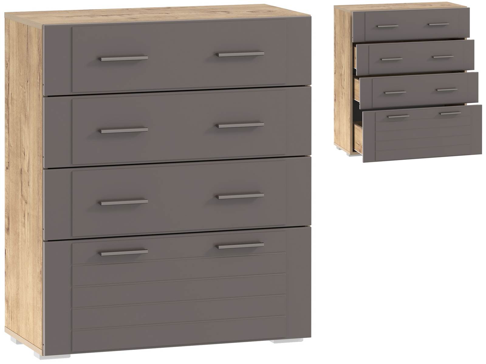 Комод оснащается четырьмя широкими выдвижными ящиками с фасадами, выполненными из МДФ.