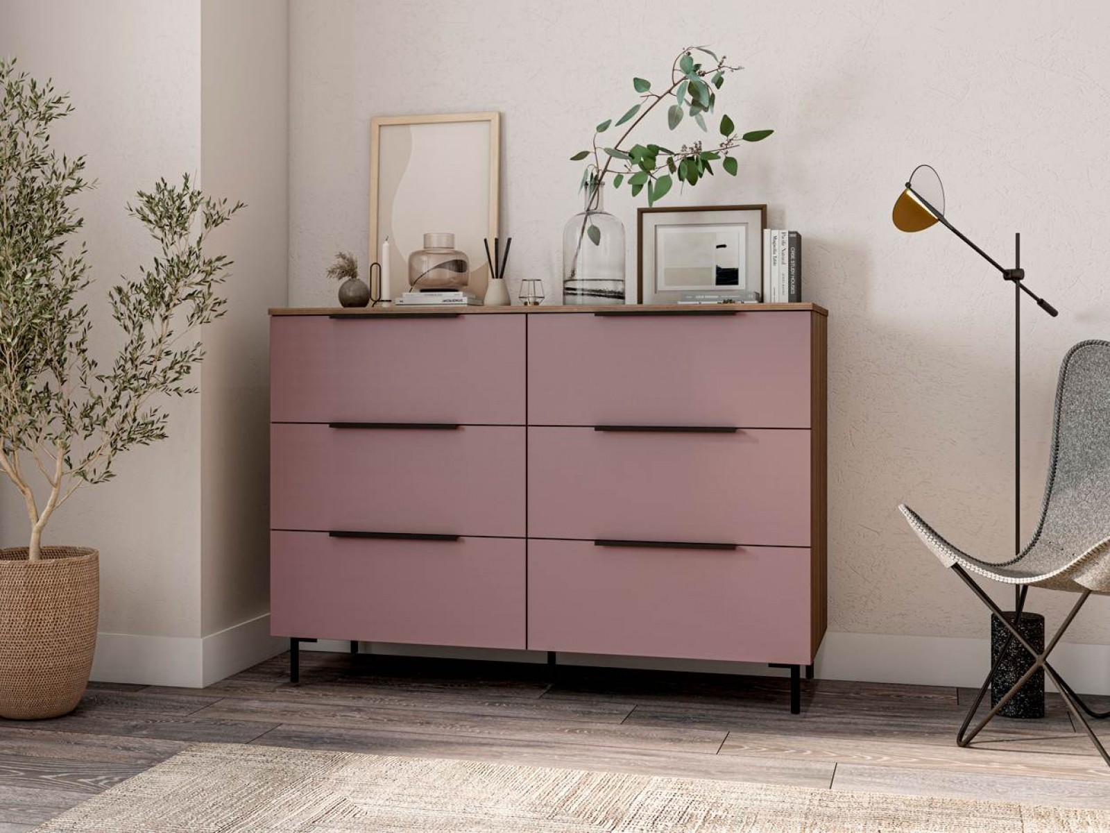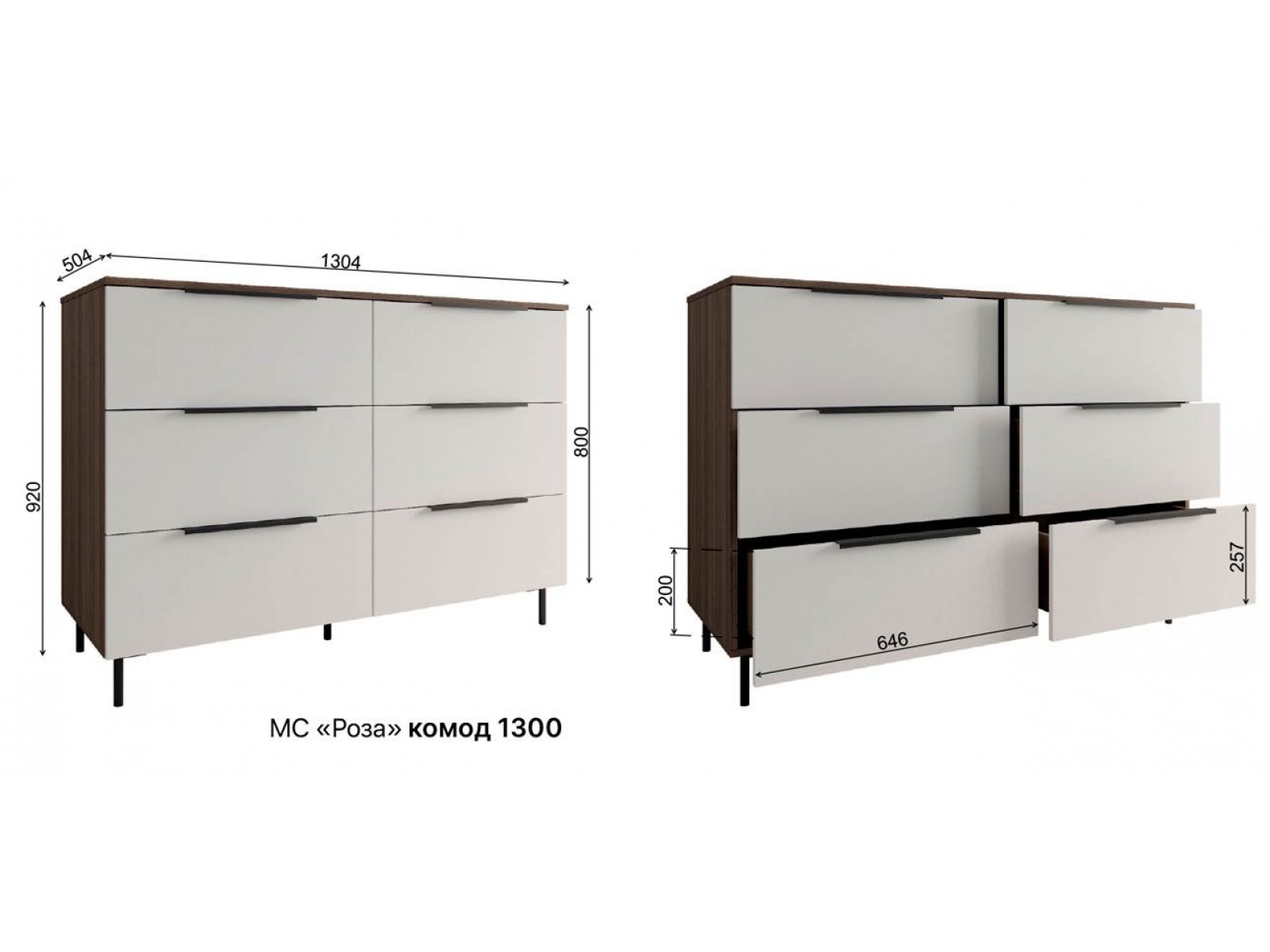 Комод имеет шесть выдвижных ящиков, которые обеспечивают достаточно места для хранения различных вещей.