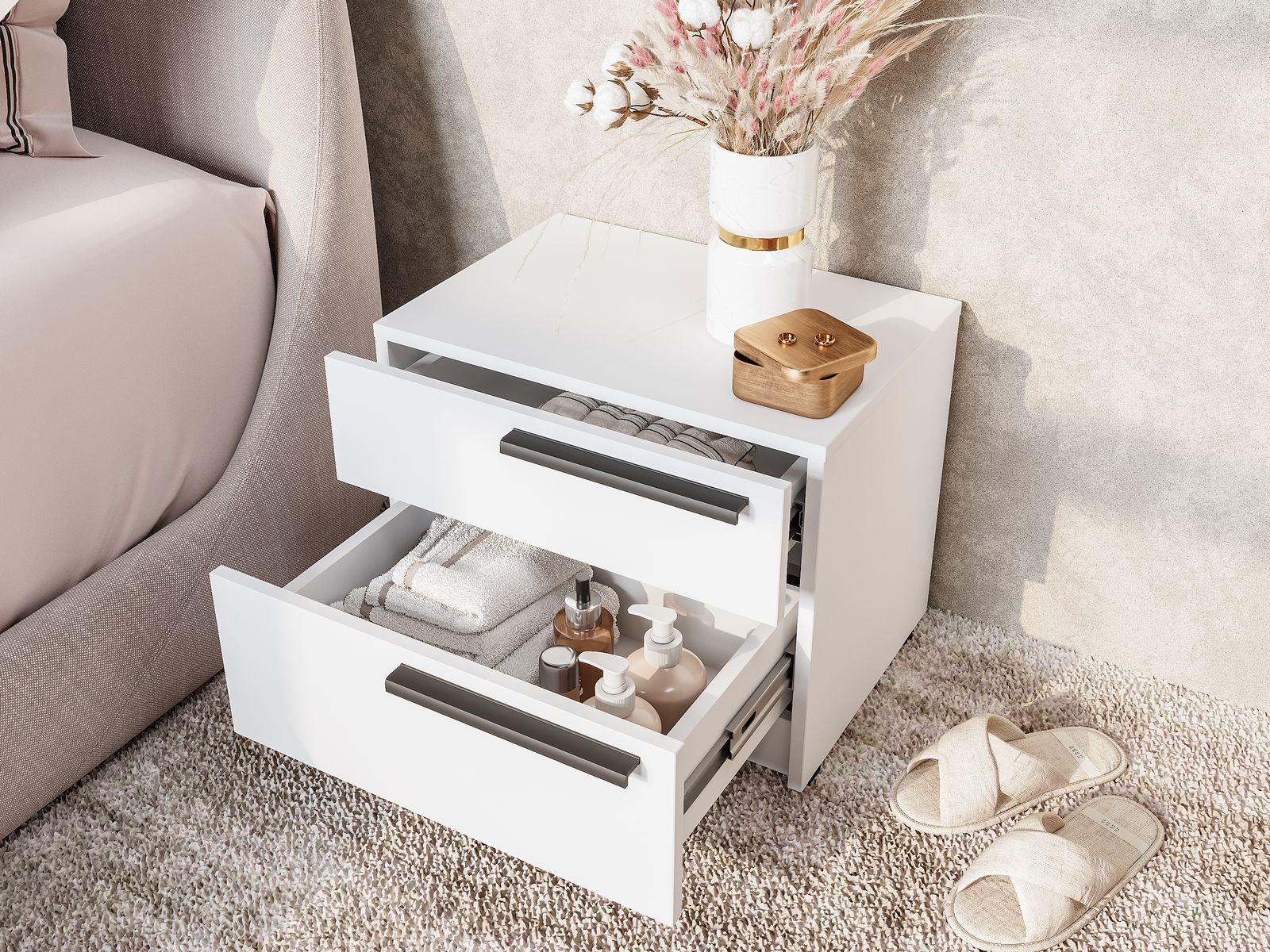 Компактная тумба Айрон ТБ-12 с двумя вместительными ящиками — универсальное решение, которое подойдёт и для спальни, и для кабинета, и для гостиной. Чистый белый оттенок позволит использовать тумбу как в ярком, так и в нейтральном интерьере.