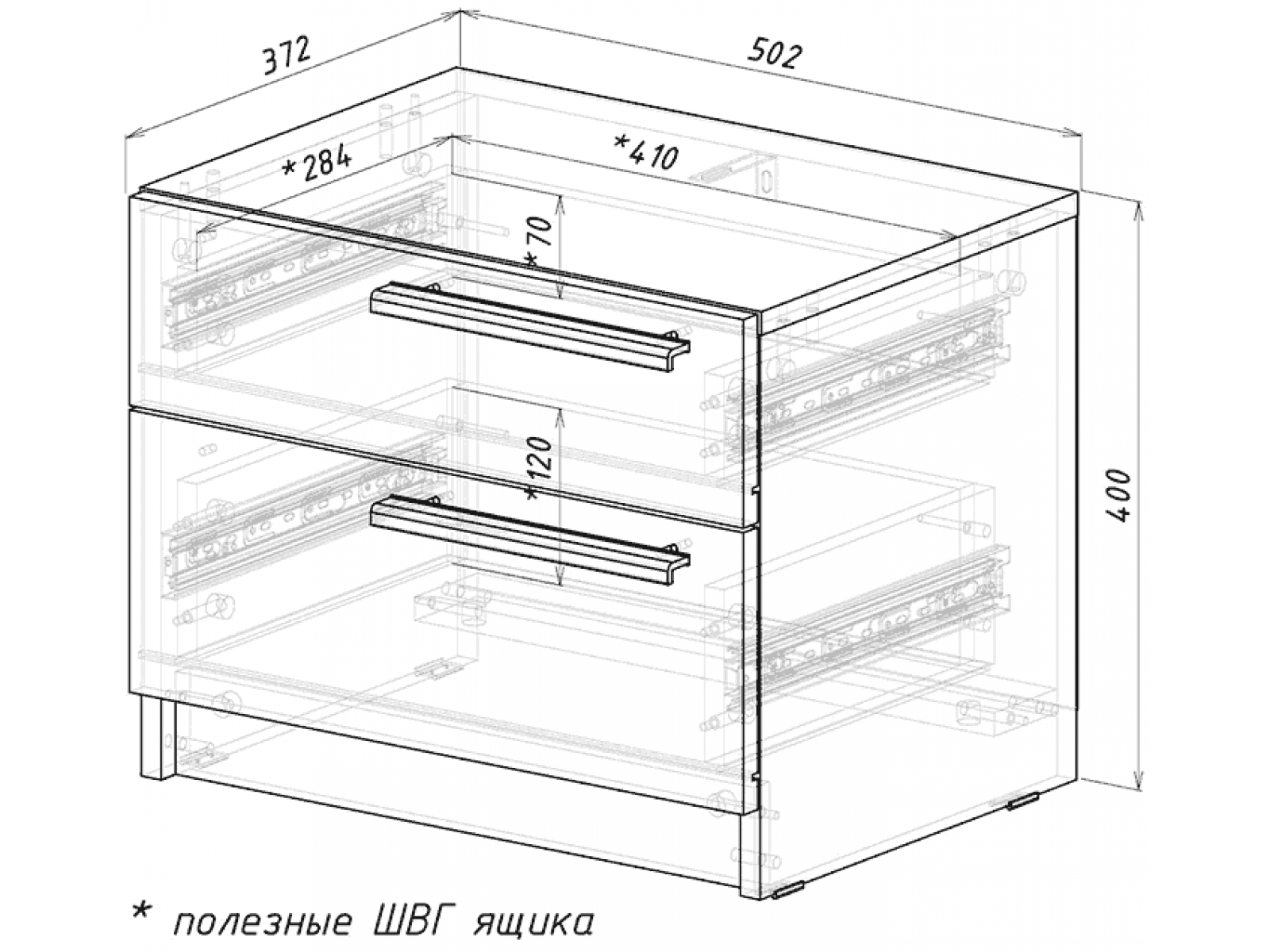 Максимальная нагрузка на ящик – 5 кг.