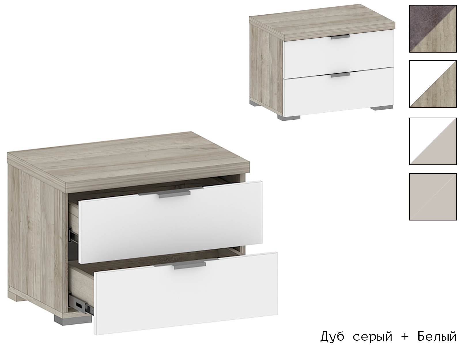 Ручки и опоры: В цветах Белый и Дуб серый - Ручка серебро. В цвете Кашемир - Ручка чёрная