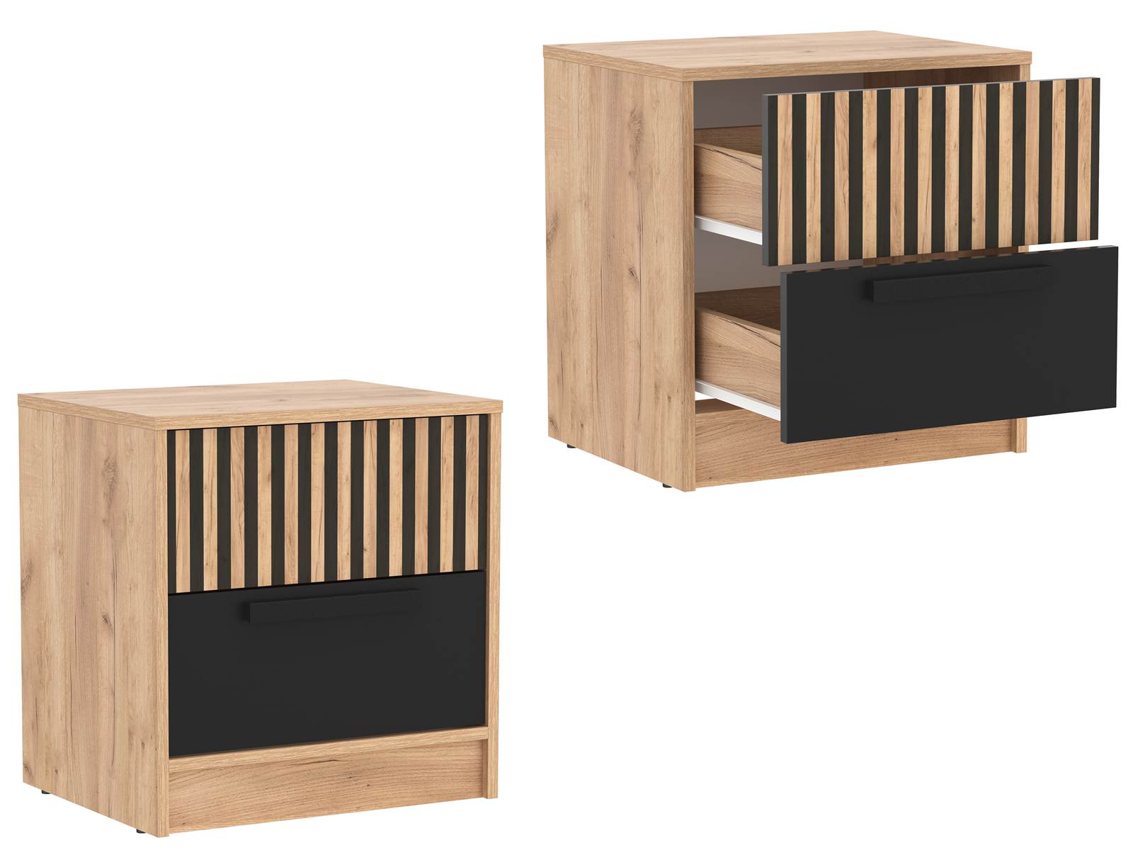 83.15 тумба прикроватная Вегас Дуб золотой + Чёрный дополнит интерьер спальной комнаты.
