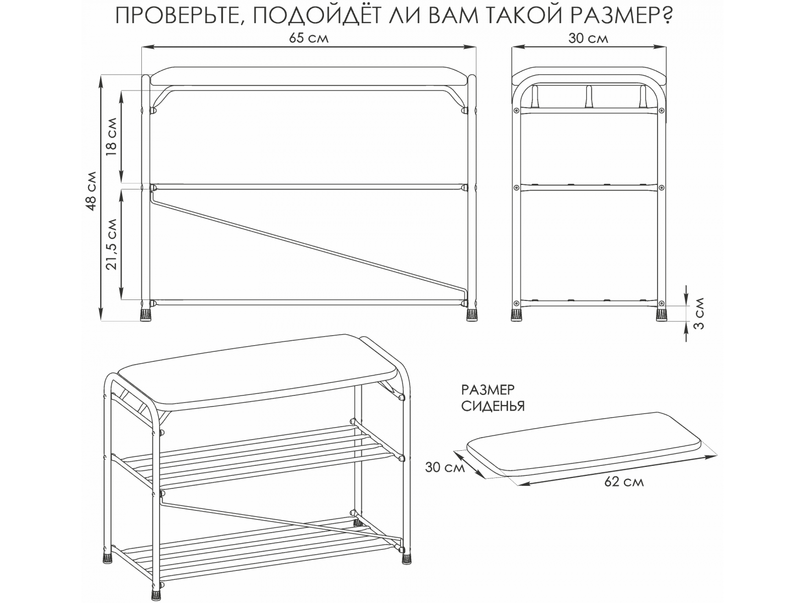 Подставка для обуви Альфа 23 с сиденьем - практичное решение для хранения обуви.