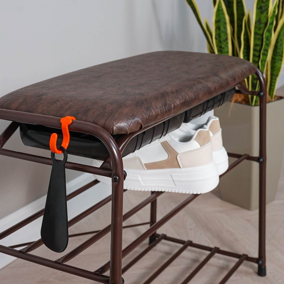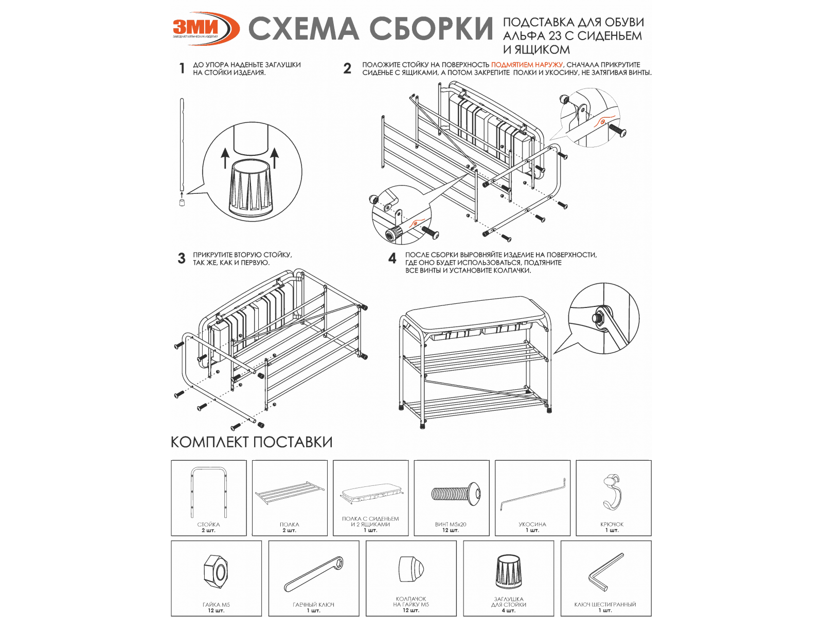 Подставка для обуви Альфа 23 с сиденьем и ящиком- практичное решение для хранения обуви.