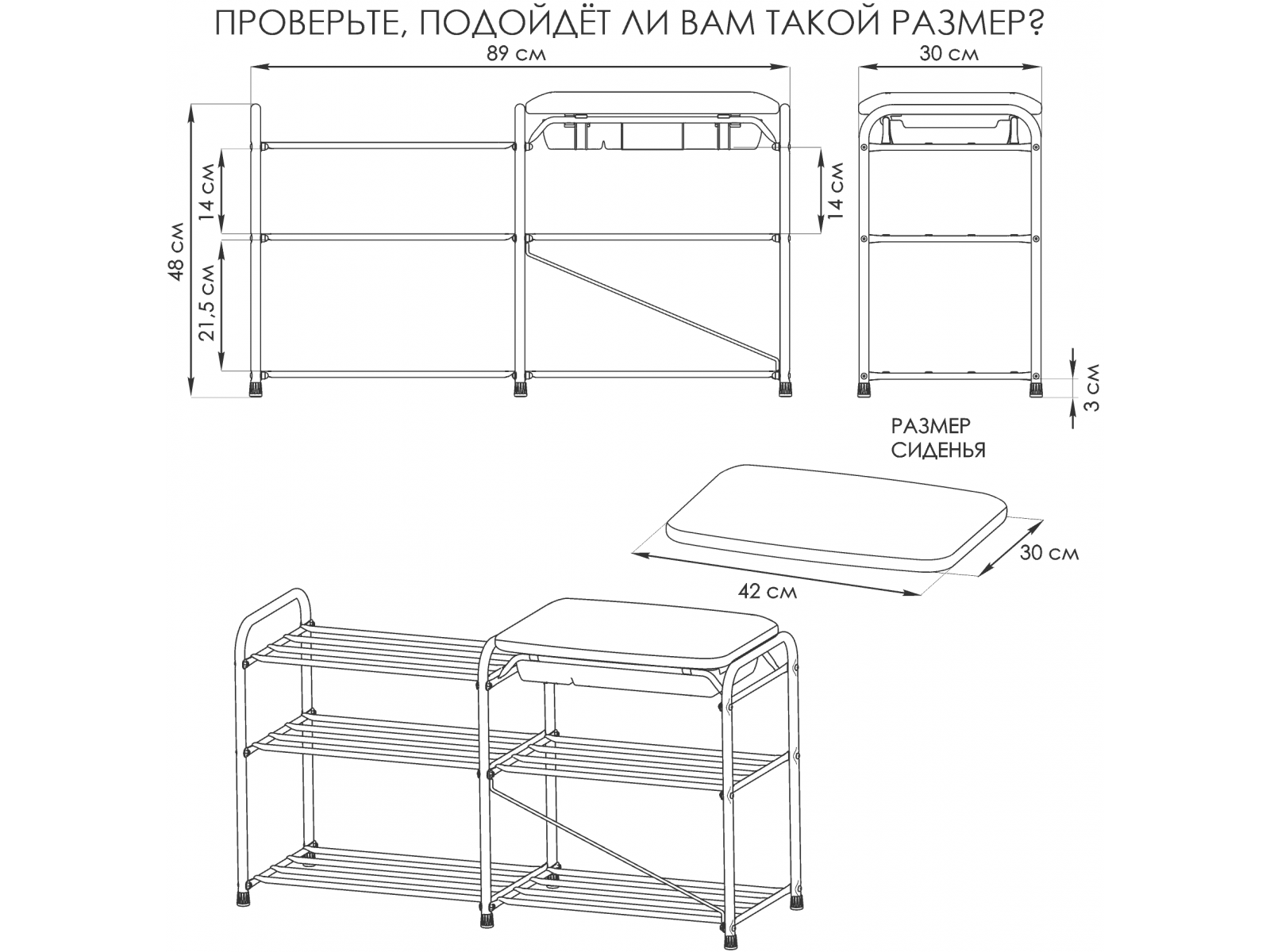 Подставка для обуви Альфа 33 с сиденьем и ящиком Черный - практичное решение для хранения обуви.