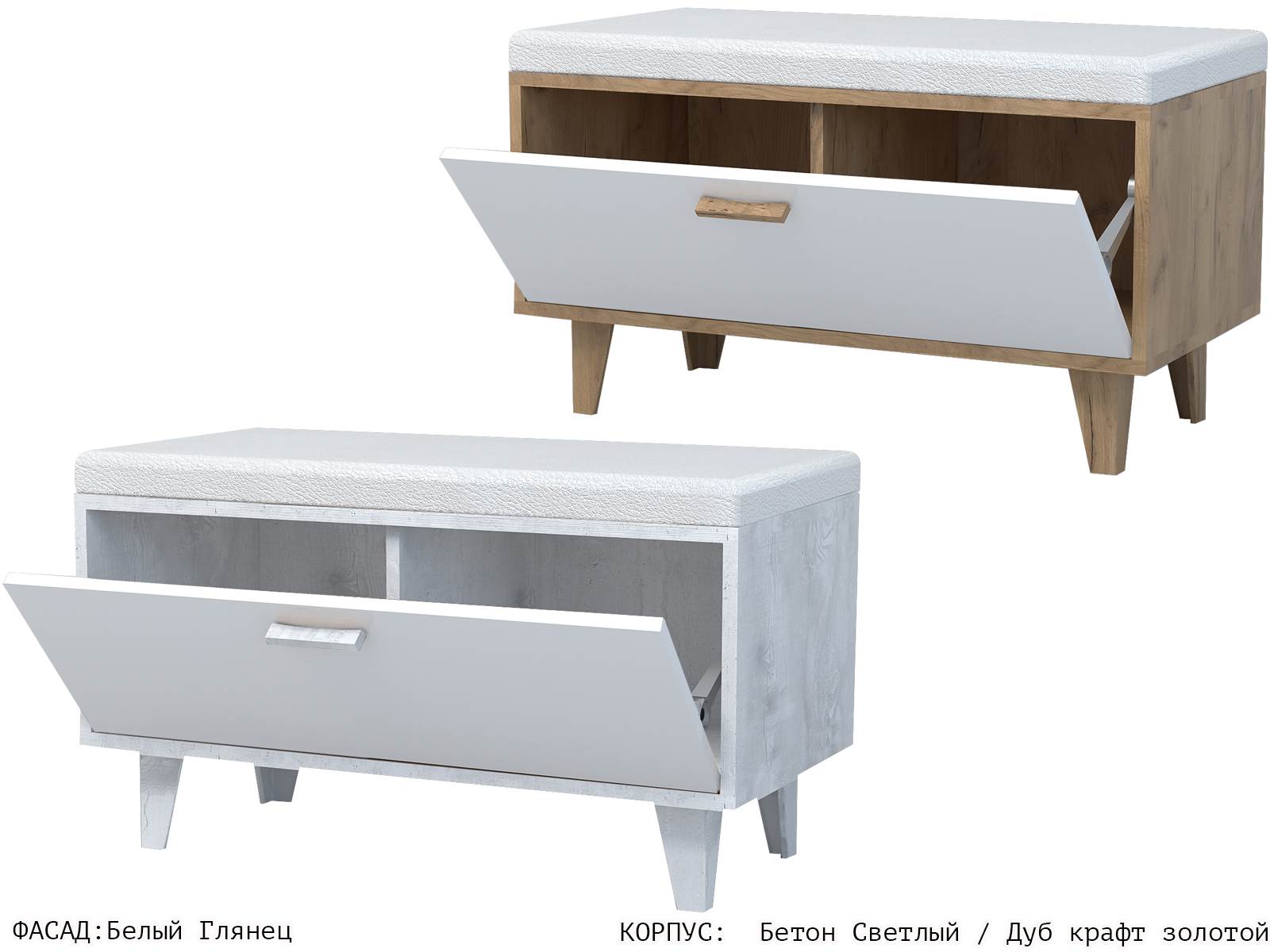 Обувница с мягким сиденьем, позволяющая благодаря наличию закрытых ниш компактно разместить обувь, а также с комфортом обуться.