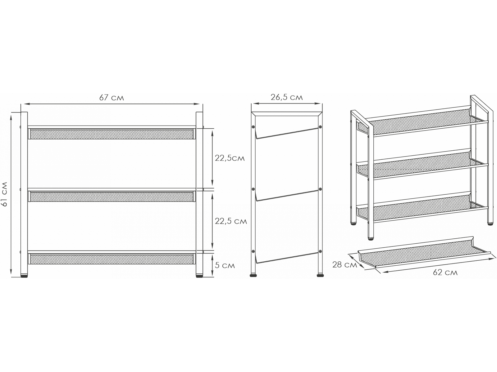 Открытая конструкция конструкция с тремя полками для хранения.