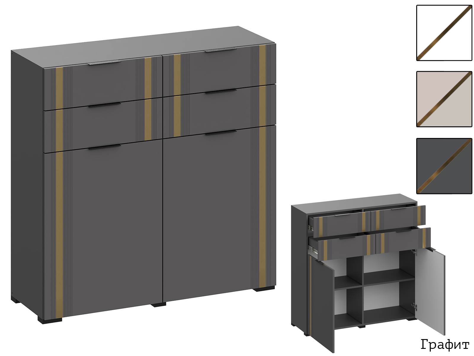 Коллекция мебели укомплектована высококачественной фурнитурой: