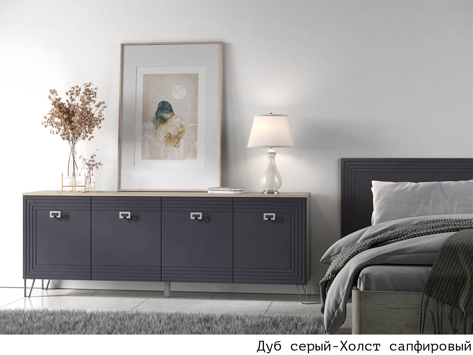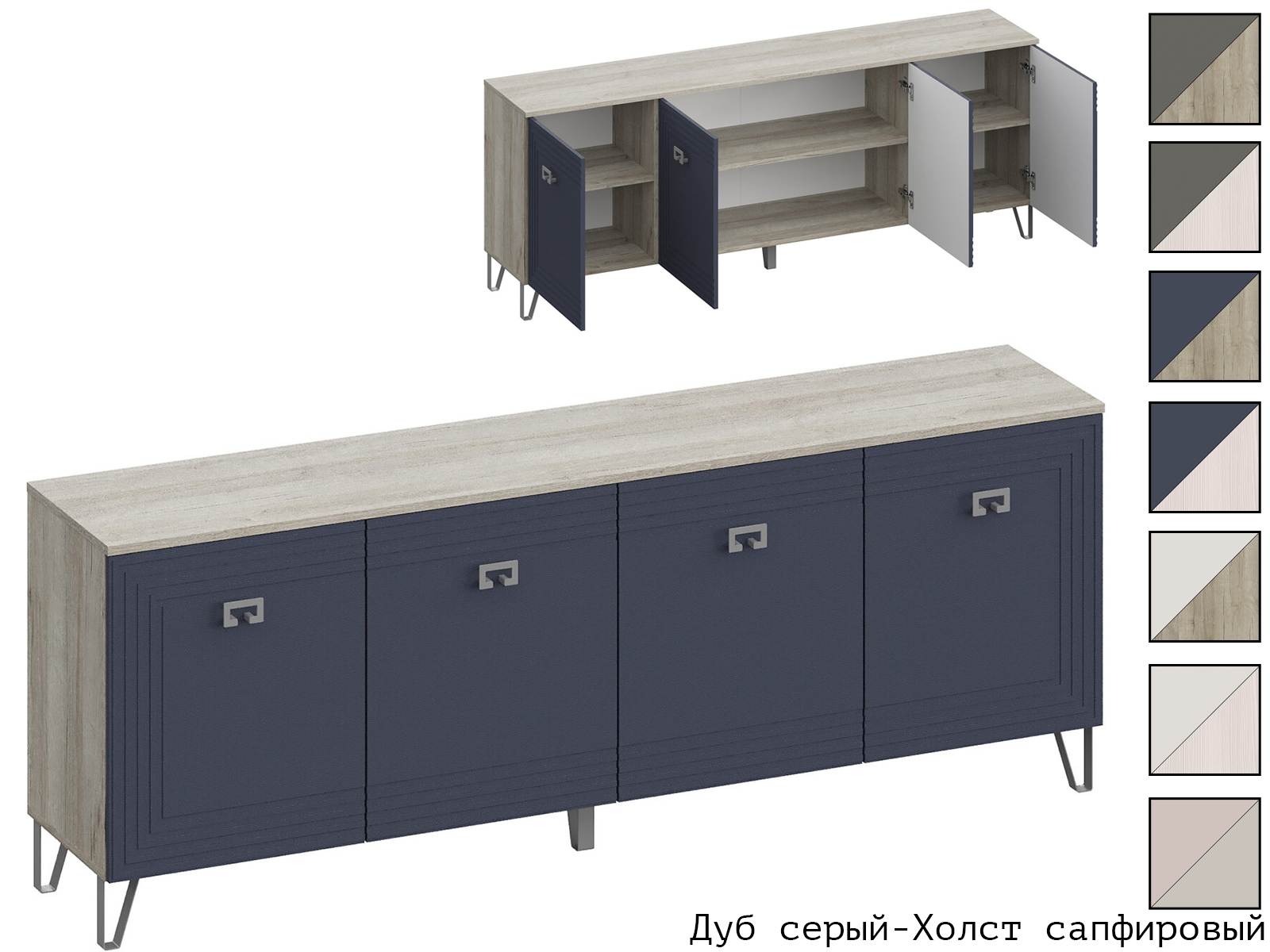 Корпус Дуб серый + Фасад Холст сапфировый