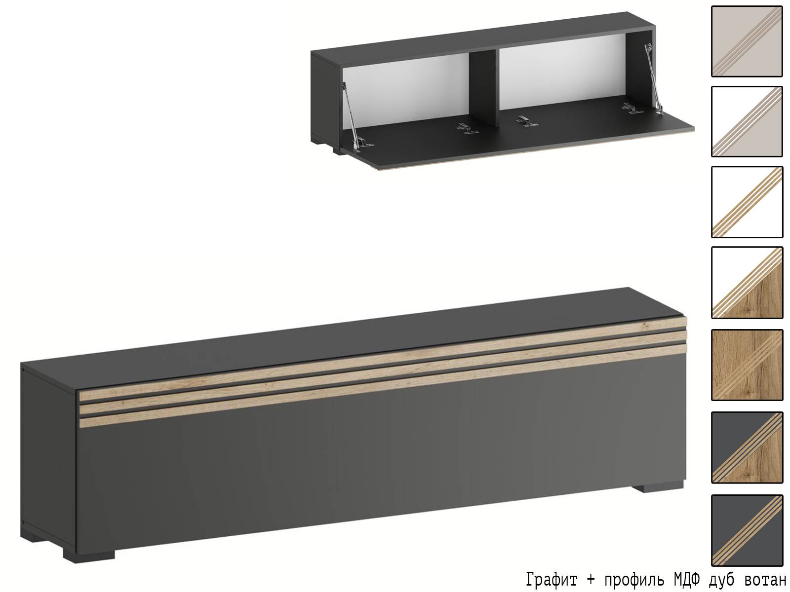 Вариант 2 Корпус ЛДСП Графит + фасад ЛДСП Графит/Декор фасада: профиль МДФ Дуб Вотан