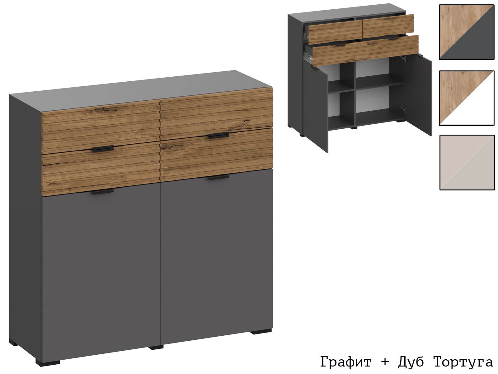 Вариант 2: Корпус ЛДСП Графит + Фасад ЛДСП Графит / МДФ Дуб Тортуга