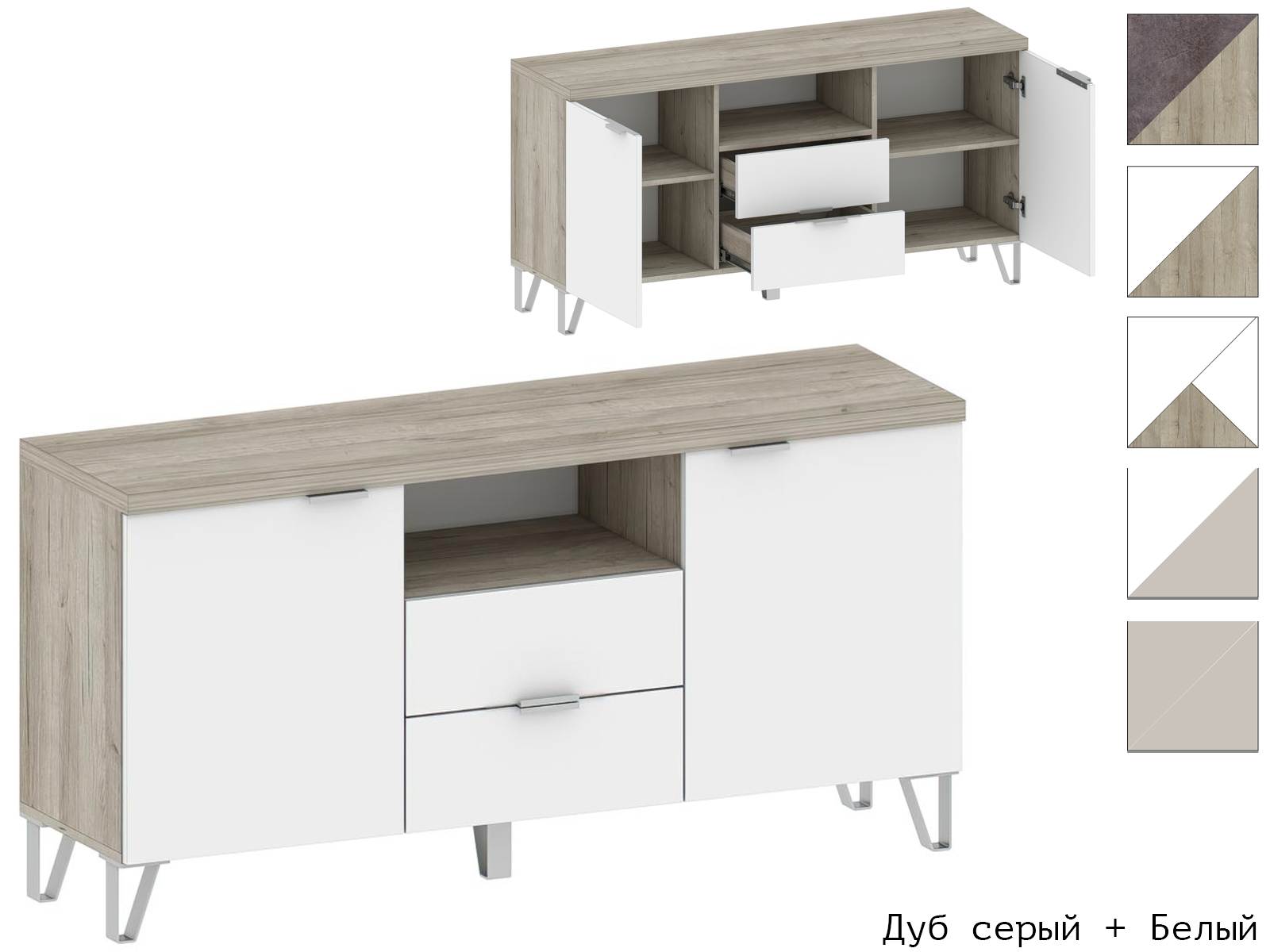 Ручки и опоры: В цветах Белый и Дуб серый - Ручка серебро. В цвете Кашемир - Ручка чёрная
