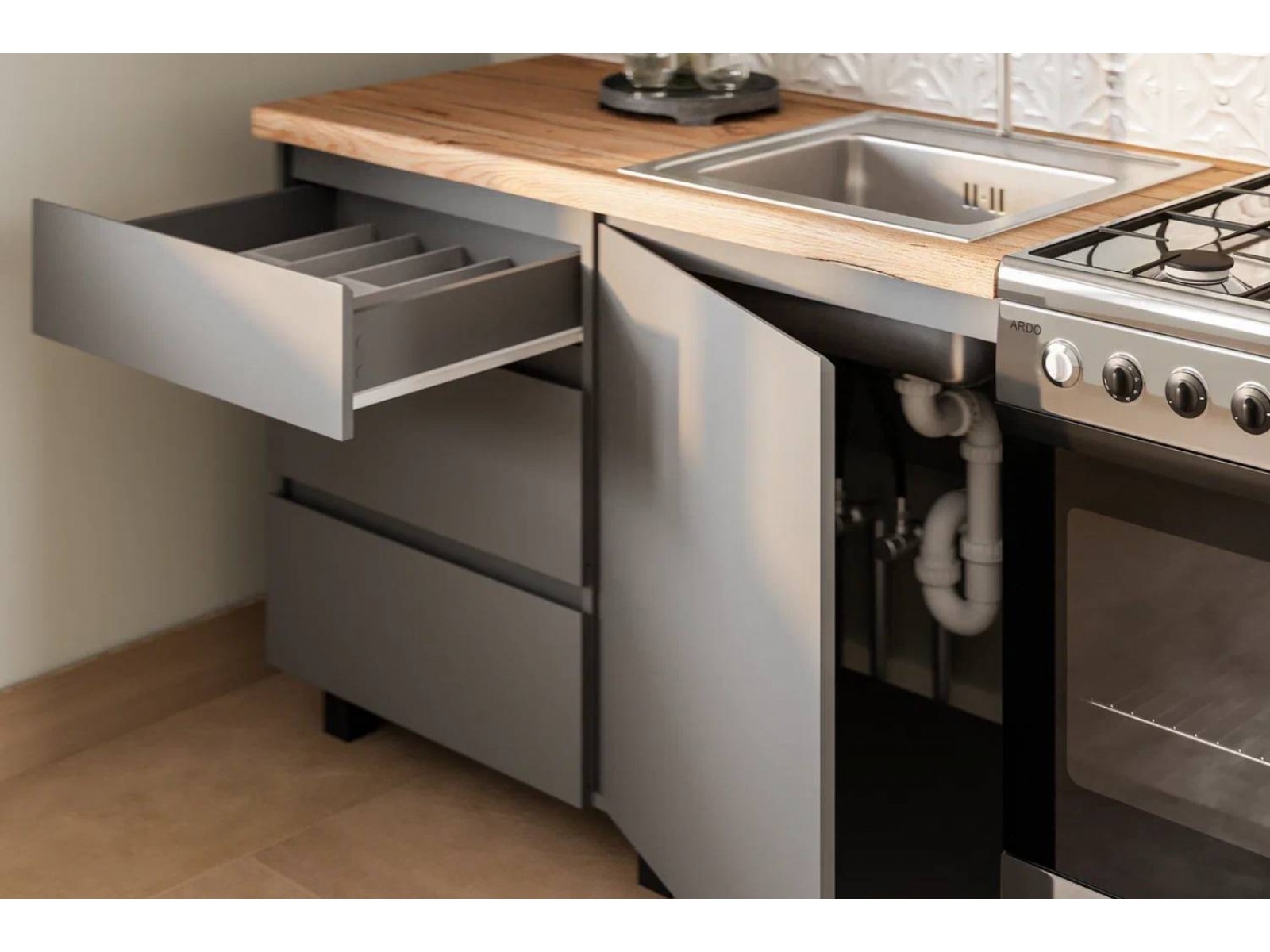 Кухня Асти - это прямые четкие линии, матовые фасады без декора и гармоничное сочетание всех блоков делает этот комплект универсальным. Кухонный гарнитур выполнен из высококачественных материалов.