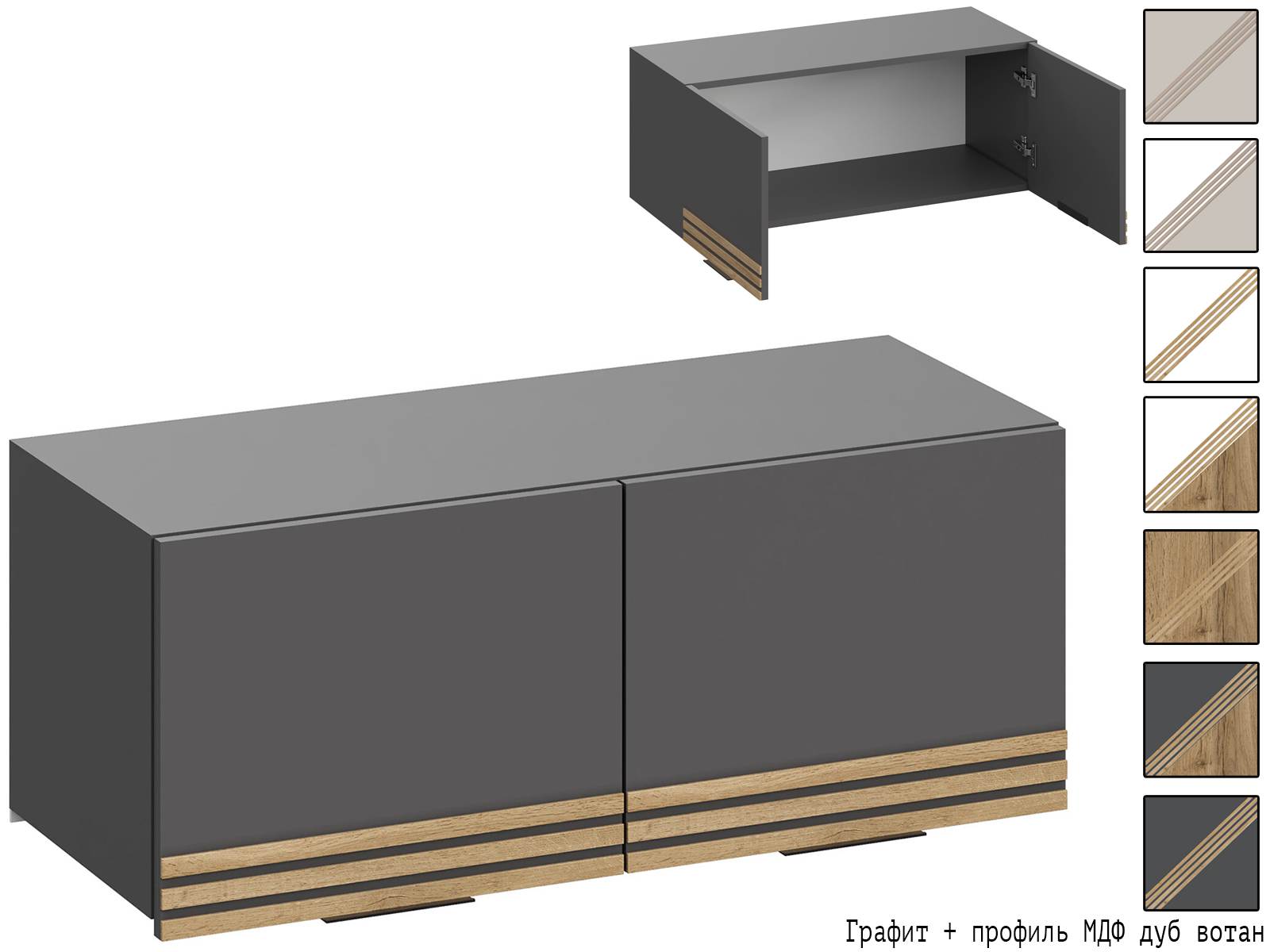 Вариант 2 Корпус ЛДСП Графит + фасад ЛДСП Графит/Декор фасада: профиль МДФ Дуб Вотан