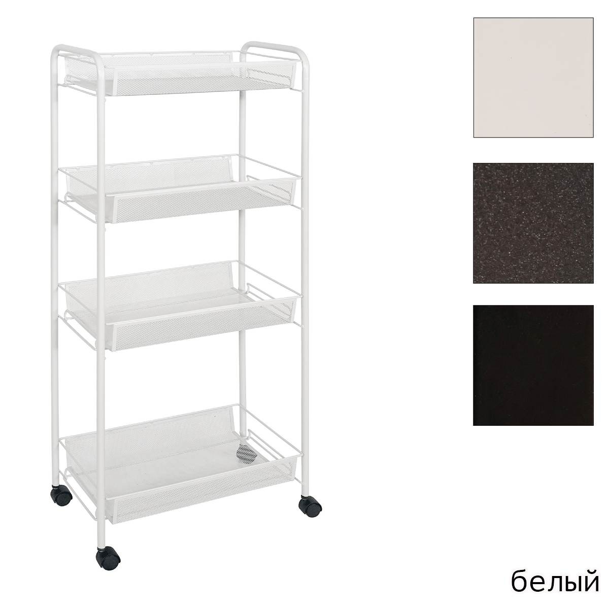 Открытая конструкция с полками сетками для хранения.