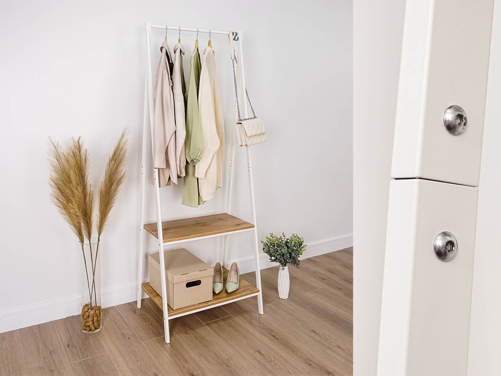 Открытая конструкция со штангой для плечиков с одеждой и двумя полками для хранения из ЛДСП.