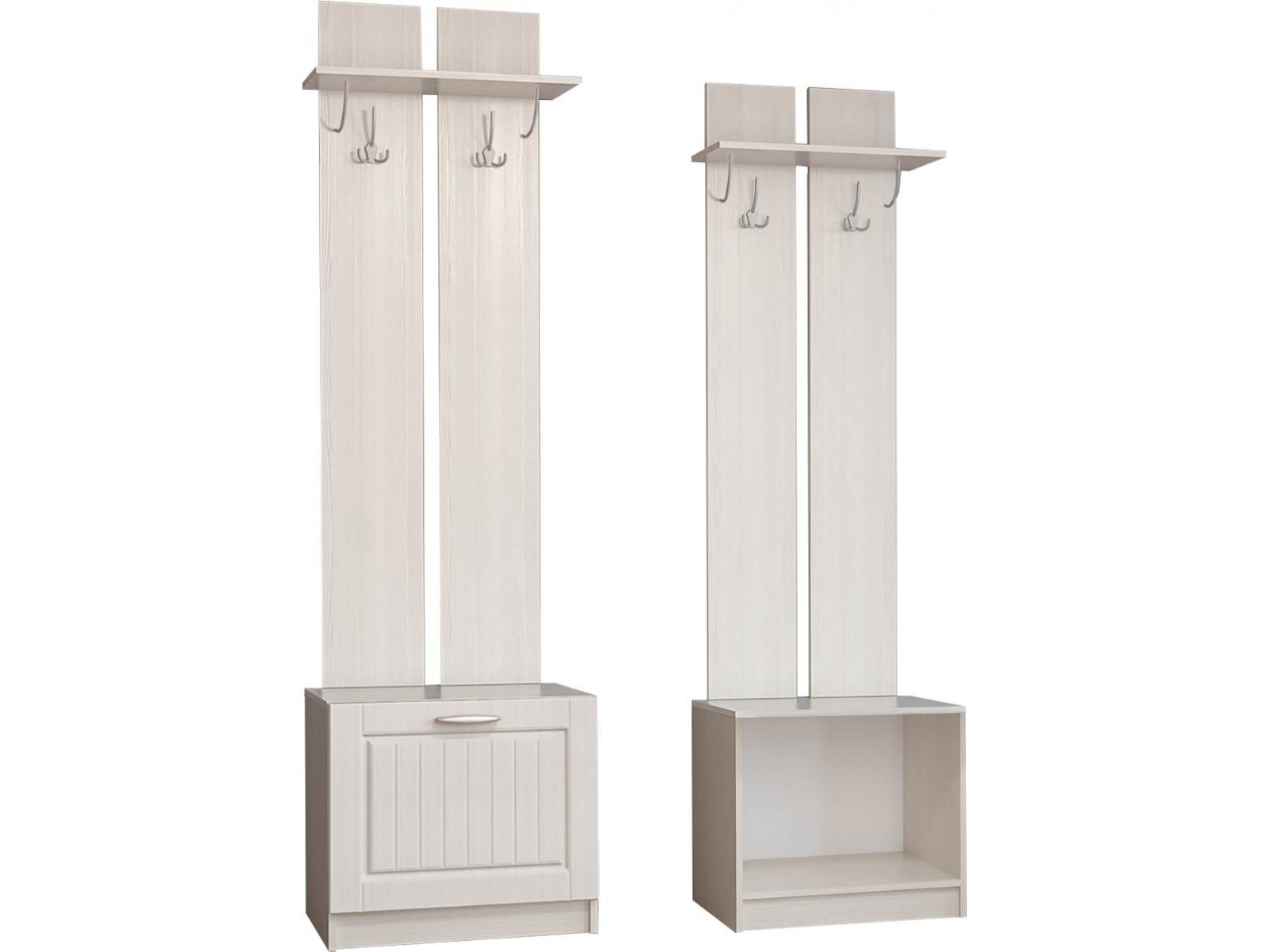 Вешалка с обувницей №2 - удобный предмет мебели, объединяющий сразу несколько функций: место для верхней одежды с антресольной полкой под головные уборы и нишей со створкой.