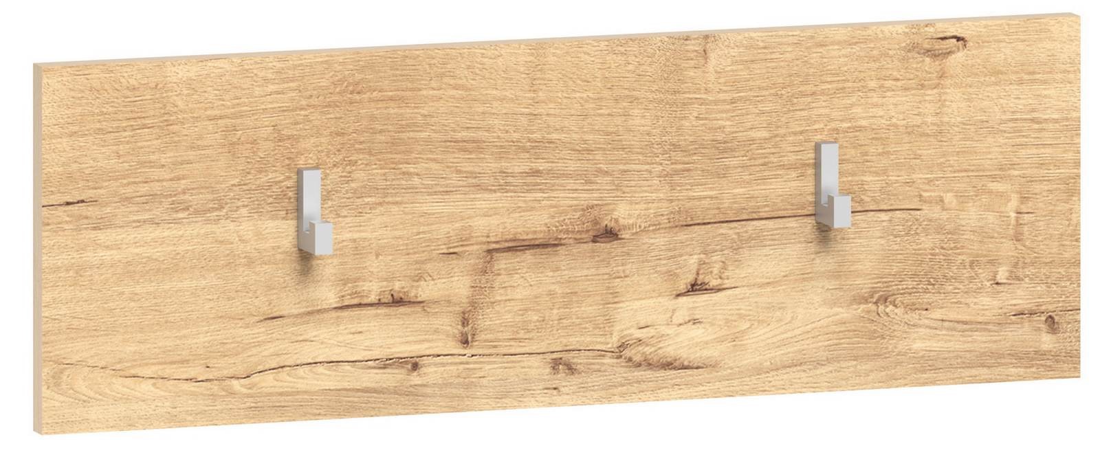 Панель из ламинированной ДСП с вмонтированными в неё двумя крючками для одежды.